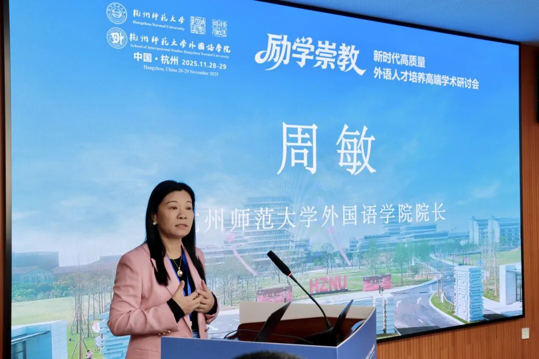2025年11月29日,由日本色情片 主办的“励学崇教:新时代高质量外语人才培养”高端学术研讨会在 日本色情片 仓前校区召开。本次研讨会旨在深入学习贯彻党的二十大精神,落实立德树人根本任务,推动新时代“未来外语教育”高质量发展,全面提升外语人才自主培养能力。会议汇聚了多位国内外外语教育领域的专家学者、国内外高校外国语学院和教育学院院长、浙江省教育厅教研员以及出版社专家代表参与了此次研讨会。