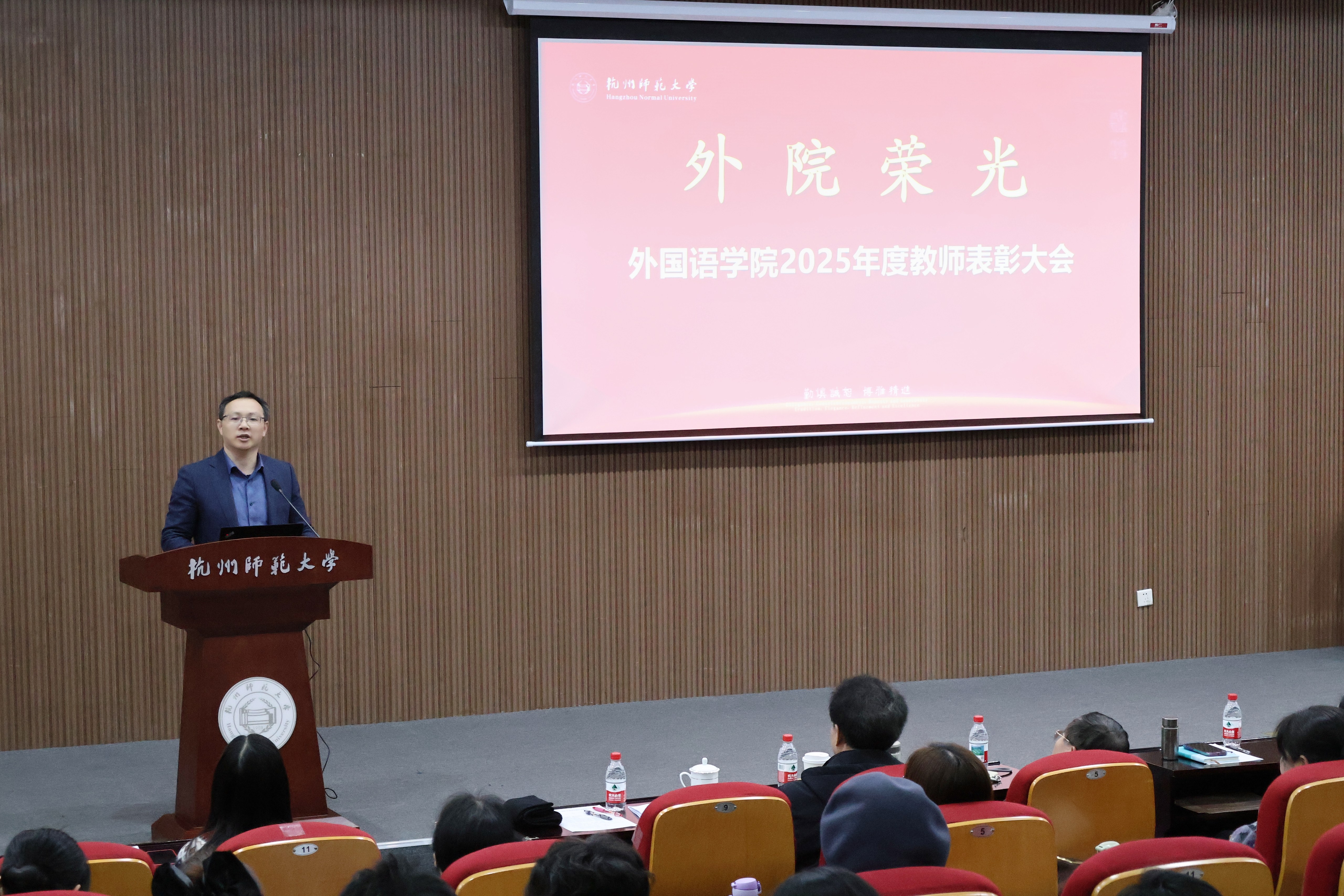 马跃新程启华章,荣光赓续谱新篇。今年是“十五五”事业发展规划开局之年,3月2日学院召开“新春第一会”暨2025年度“外院荣光”教师表彰大会,谋划部署2026年重点工作,并对过去一年在学科建设、教学科研、人才培养、学生育人、社会服务、党建、群团、统战等各领域作出突出贡献的先进教师个人和先进集体进行表彰。校党委委员、副校长陈礼珍出席表彰大会并讲话,学院领导班子成员和全院教职工参加会议。
