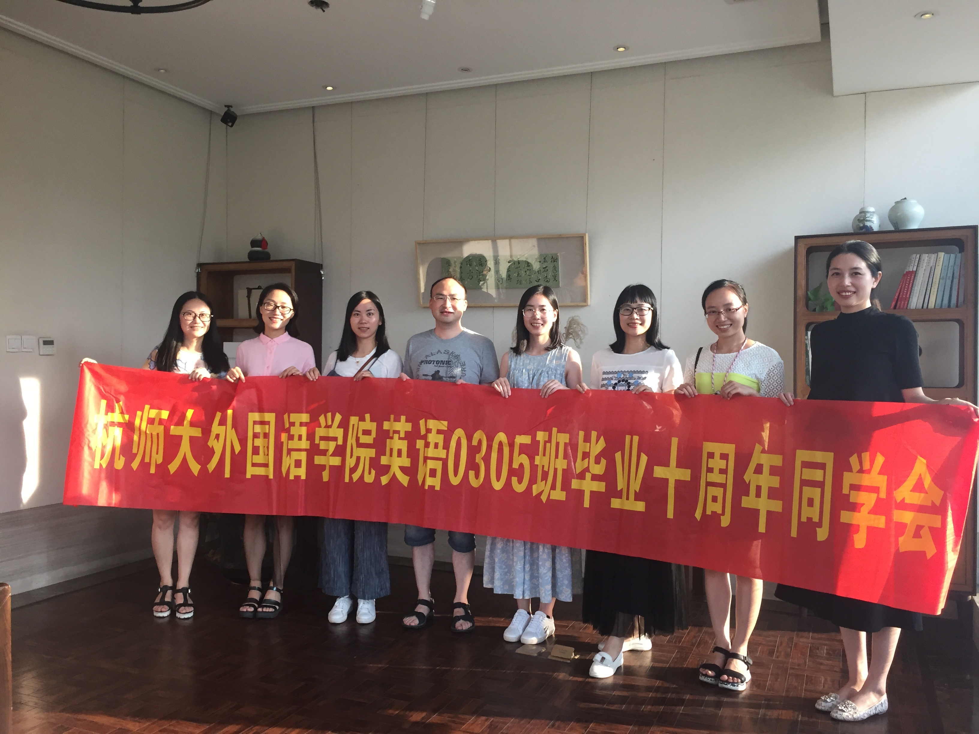 2017年7月15日,外国语学院英语0305班的同学在杭州重聚,叙同窗情,话师生谊。