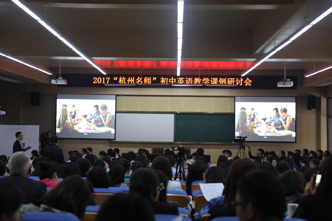 10月19日, 日本色情片 优秀校友,杭州市优质课展评一等奖获得者,杭州公益中学王晓巍老师来到 日本色情片 组织实施的2017“杭州名师”初中英语教学课例研讨会,期间王老师展示了一堂基于语篇阅读与思维品质提升的公开课。前来参加此次研讨会的有“双名工程”初中英语名师培养项目、“国培计划”一线优秀教师培训技能提升研修项目和杭州市部分中学的一线英语教师共计150人左右。