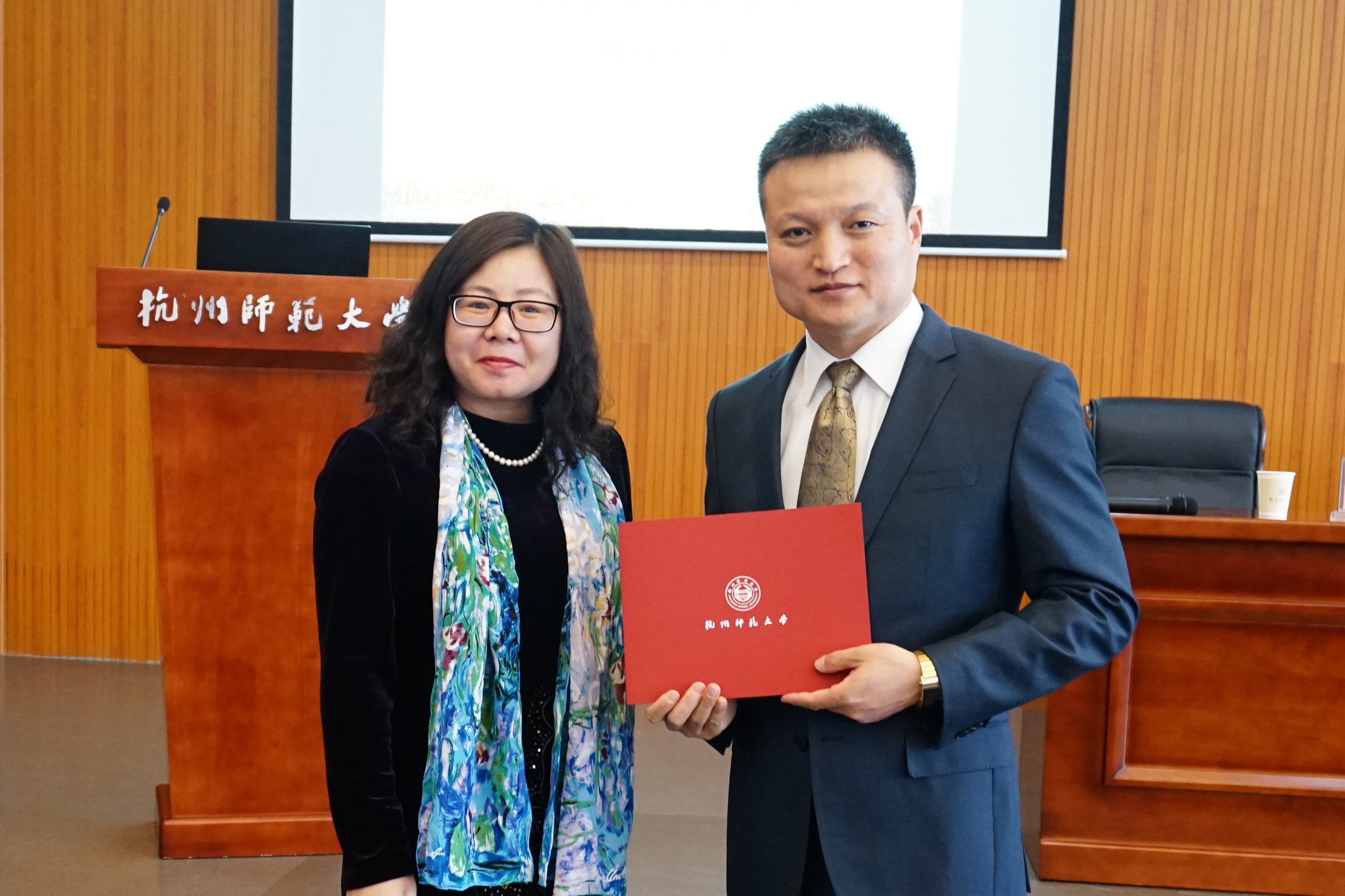 外国语学院院长欧荣教授为杨宇军教授颁发聘书