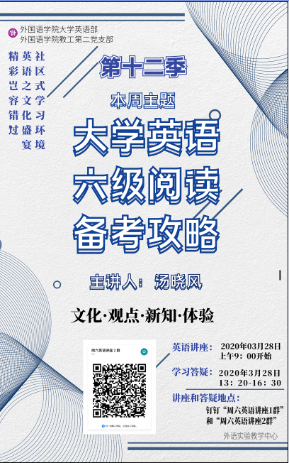 - 周末外语讲座:大学英语六级社科类阅读文本解析