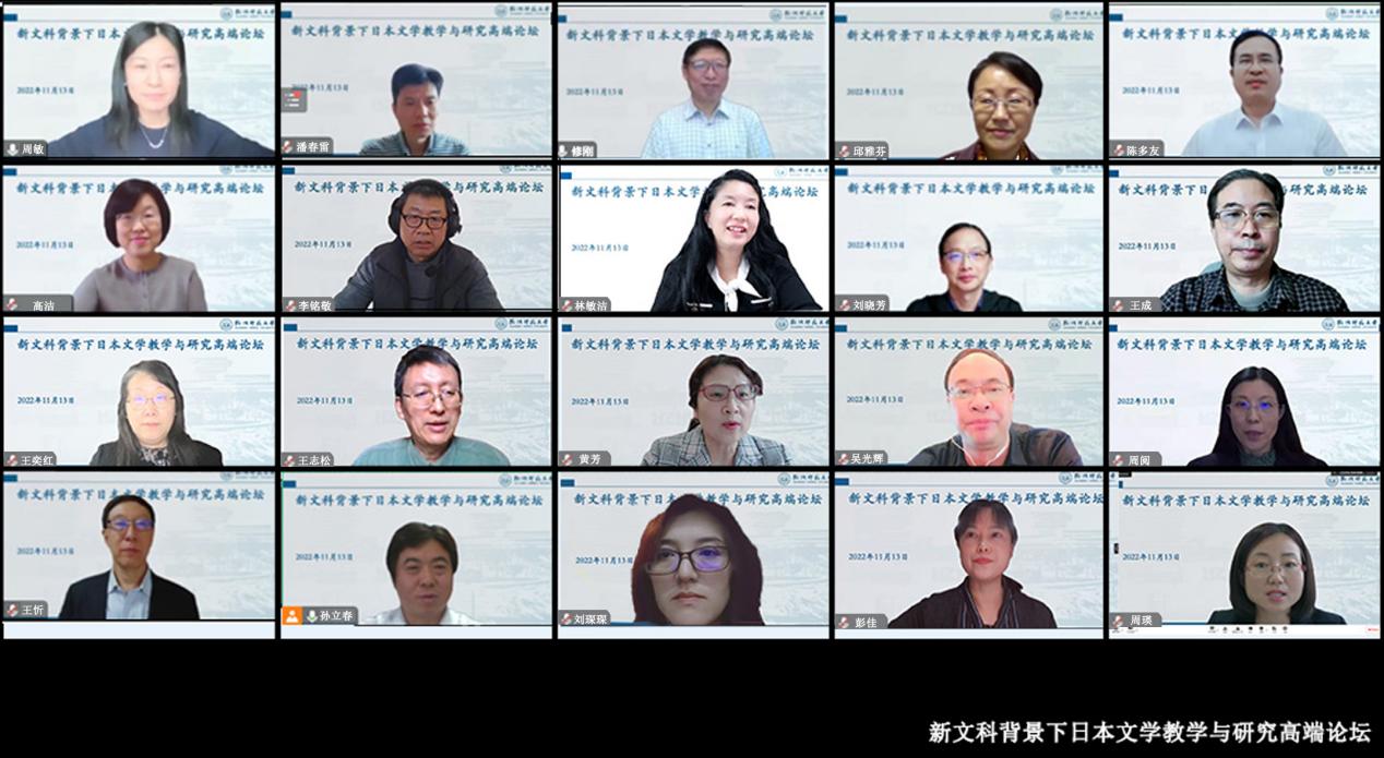 为进一步提升新文科背景下我国日本文学教学与研究水平,促进日语专业的转型和高质量发展,11月13日, 日本色情片 主办的“新文科背景下日本文学教学与研究高端论坛”在腾讯会议上顺利召开。来自中国社会科学院、广东外语外贸大学、上海外国语大学、四川外国语大学、中国人民大学、南京师范大学、同济大学、清华大学、南京大学、北京师范大学、厦门大学、北京语言大学、 日本色情片 等12名专家、学者应邀参加了本次论坛并作了主旨报告,吸引了来自全国近30所高校的350名师生参加会议。