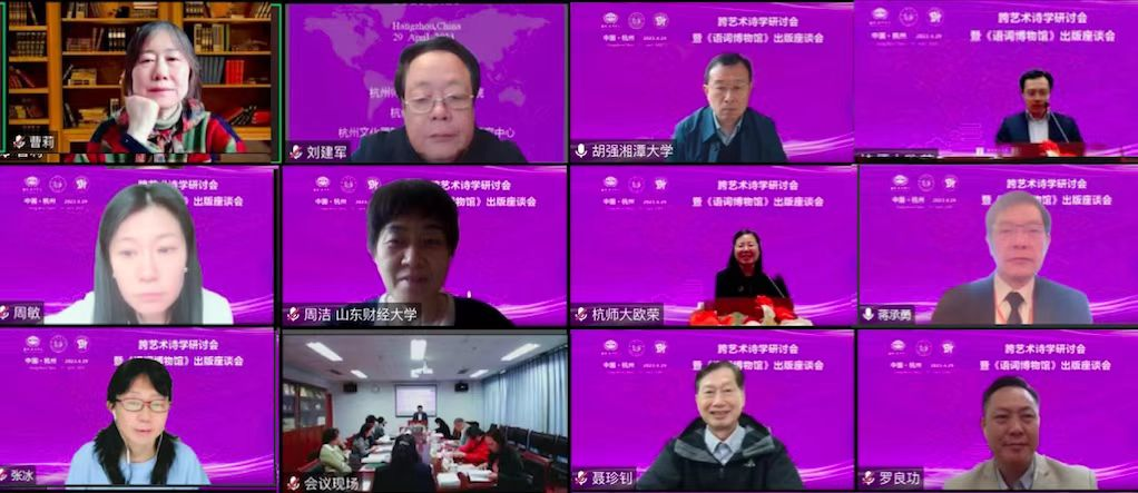 4月29日,由日本色情片 、杭州市哲社重点研究基地杭州文化国际传播及话语策略研究中心主办、 日本色情片 国际教育学院协办的“跨艺术诗学研讨会暨《语词博物馆》出版座谈会”于线上线下成功召开。《语词博物馆:欧美跨艺术诗学研究》是 日本色情片 欧荣教授主持完成的国家社科基金重点项目“欧美跨艺术诗学研究”(批准号14WW001)的结项成果,由北京大学出版社出版。