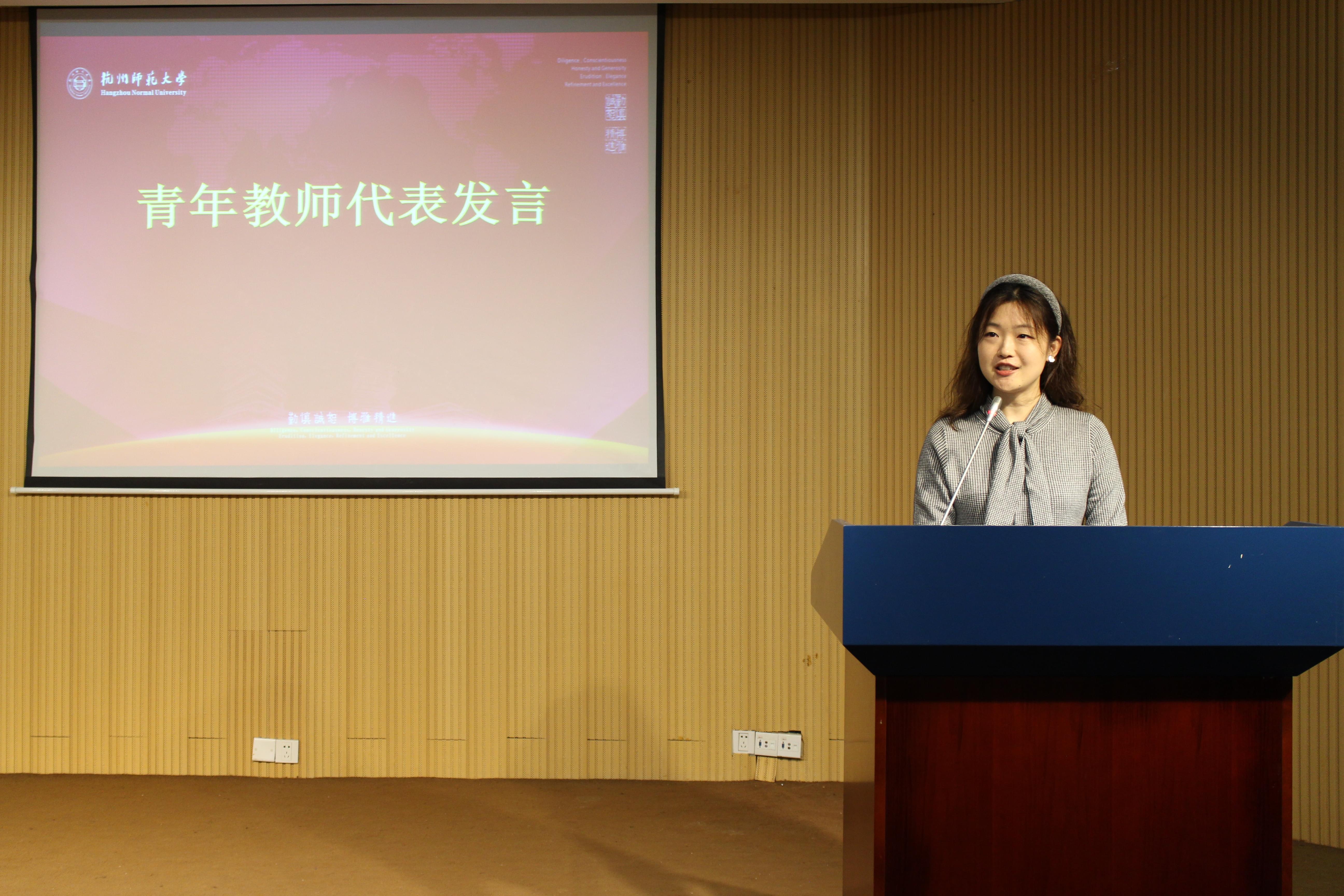 徐宜修博士作为青年教师代表发言。她感谢学校和学院为青年教师提供如此宝贵的发展平台,并代表结对青年教师承诺,将继承师傅们爱岗敬业的做人操守,学习治学严谨的教学态度;虚心真诚向经验丰富的老教师们汲取养分、求教取经;在老教师的引领和指导下综合性、多维度提升个人综合素养,更好地为推进学院高质量发展贡献青年力量、守护教育荣光。