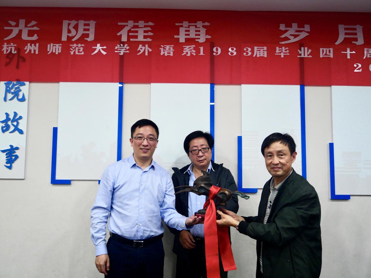 此外,校友代表还为学校赠送了一件寓意深远的纪念品——铜雕作品“奔马”。这匹骏马奔腾向前,寓意着外国语学院能够驰骋在学术的千里疆场,不断追求卓越。