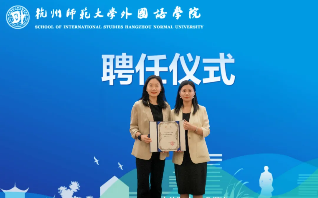 周敏院长上台为于秀红女士颁发聘书,正式聘请于秀红女士为外国语学院客座教授。