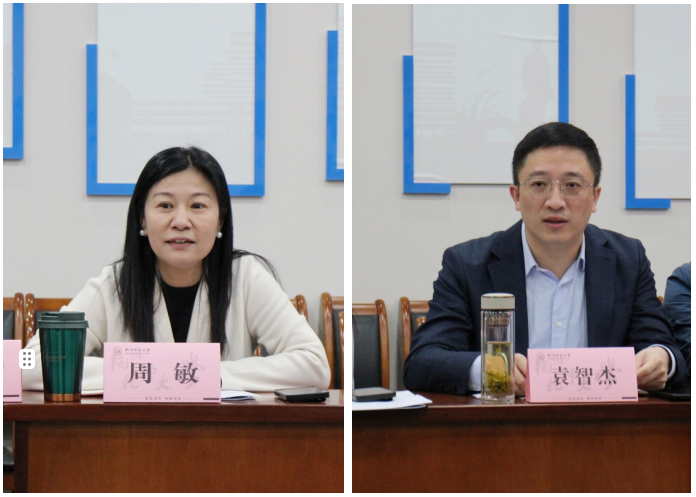周敏和袁智杰代表学院班子衷心感谢校领导和各职能部门长期以来对学院各项事业发展的指导、支持与帮助,一致表示全院师生将一如既往锚定争创一流奋斗目标不懈努力、奋勇拼搏,努力开创学院事业高质量发展新局面。