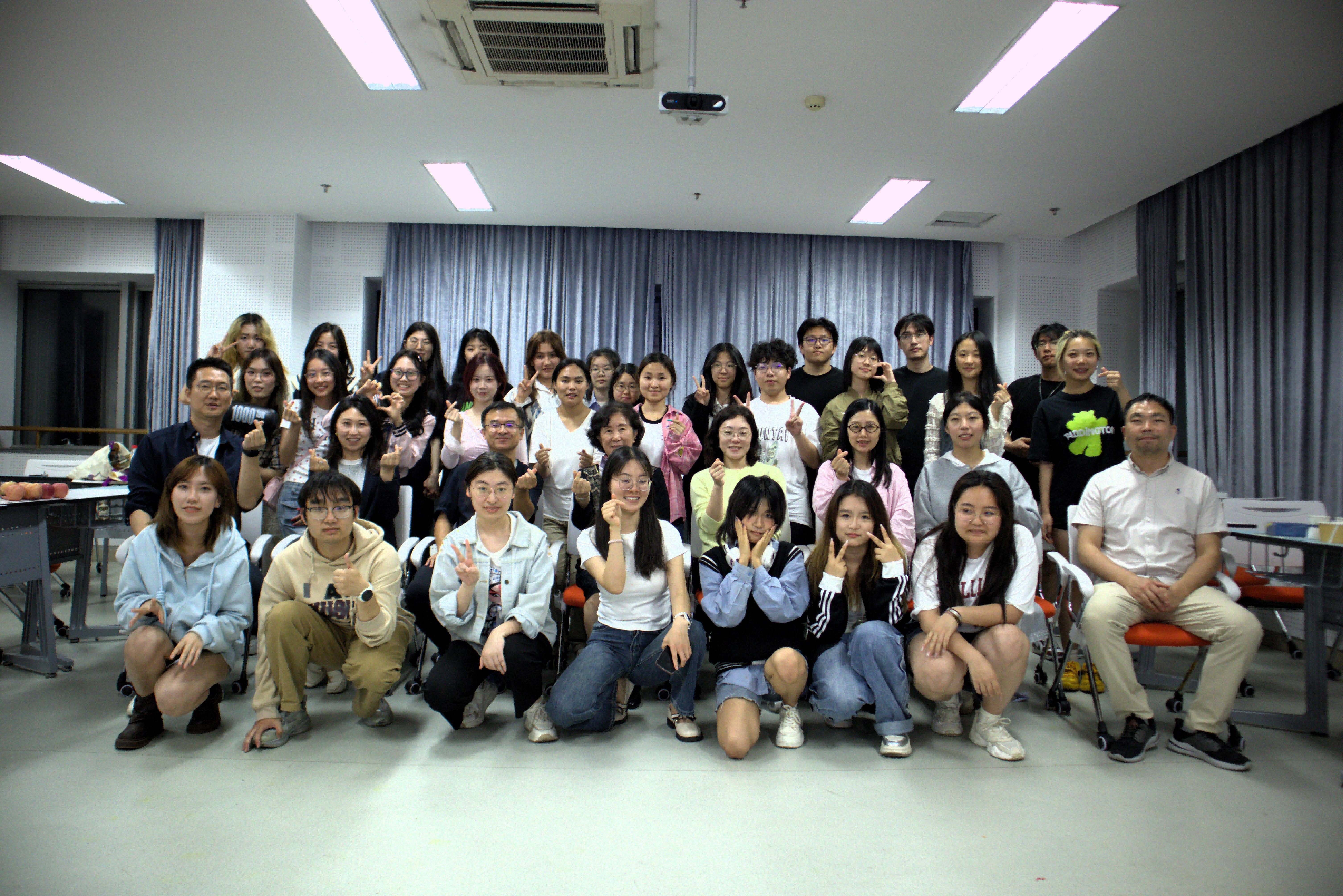活动高潮阶段,师生围绕 “中韩服饰礼仪比较”“饮食文化的地域特征”“传统音乐的现代演绎” 等议题展开分组研讨。学生通过案例分析、观点分享,既深化了对韩国文化特质的认知,亦从跨文化视角重新审视中华文化的独特价值,有效提升文化对比分析能力与文化自信。