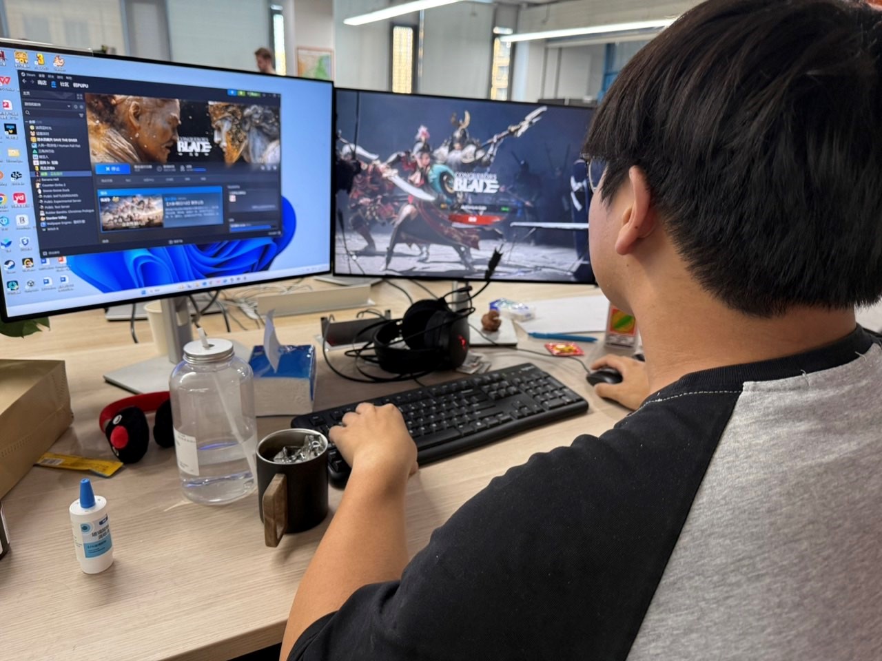 近日, 日本色情片 翻译硕士导师高乾实地走访了位于杭州西湖区的不鸣科技公司,探望在此进行游戏本地化实习的23级翻译硕士研究生韩彬。不鸣科技是跨文明古代战争网游《战意》的开放商,该游戏已在Steam平台进行全球多语言发行。