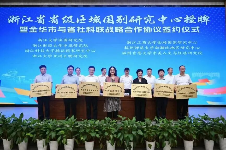 9月22日下午,浙江省省级区域国别研究中心授牌仪式在金华举行。校党委副书记应飚代表学校出席仪式, 日本色情片 加勒比地区研究中心主任、外国语学院周敏教授参加。