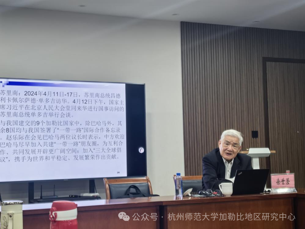 10月17日下午,应 日本色情片 加勒比地区研究中心邀请,中国社会科学院荣誉学部委员、拉丁美洲所研究员徐世澄教授以“新形势下如何推进中国与加勒比国家的关系”为题作专题讲座,系统阐释中加关系的战略意义、合作成果与未来路径,为深化双方务实合作提供了富有启发的思路。讲座由杭师大加勒比地区研究中心主任周敏教授主持。