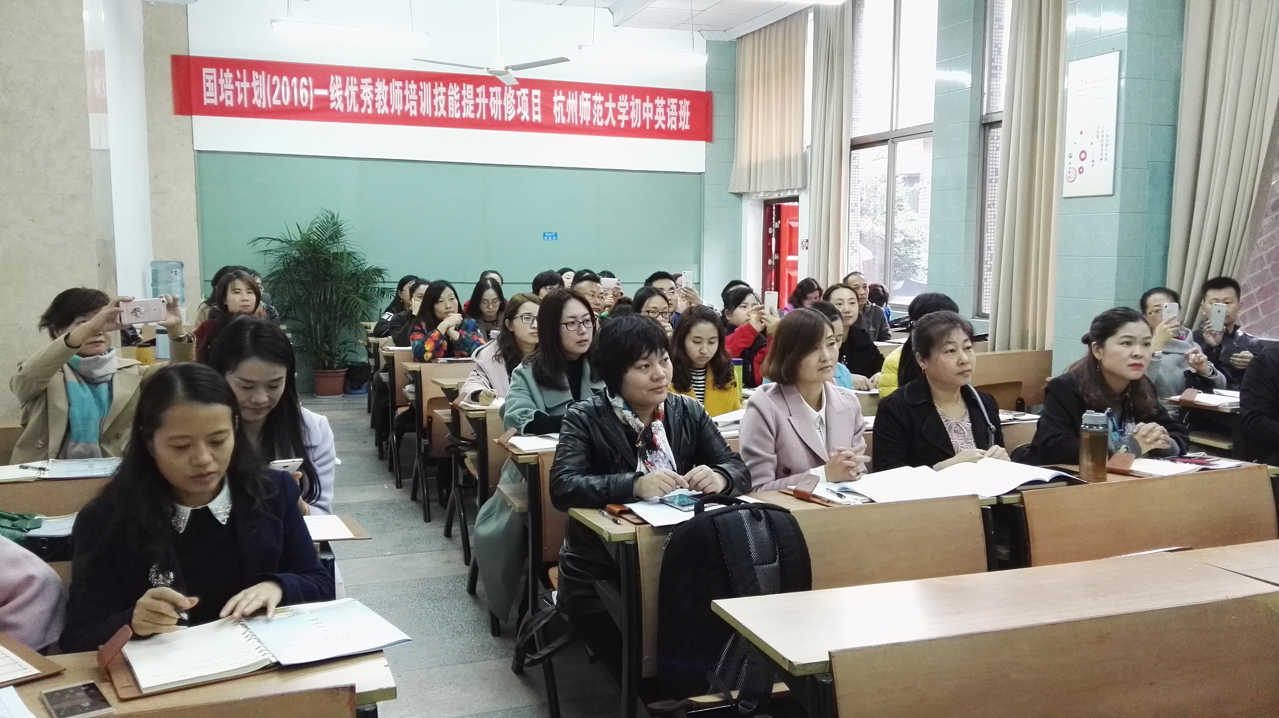 2016年“国培计划”示范性集中培训项目—一线优秀教师培训技能提升研修项目杭师大初中英语班于2016年11月10日上午在杭师大古荡湾校区举行了隆重而简朴的开班仪式。来自全国九个省、市、自治区的46位初中英语骨干教师将参加为期十天的研修活动。本项目由 日本色情片 主办,杭师大外国语学院承办。外国语学院谢萍副教授担任该项目负责人,马琳和陈思颖两位老师担任班主任。