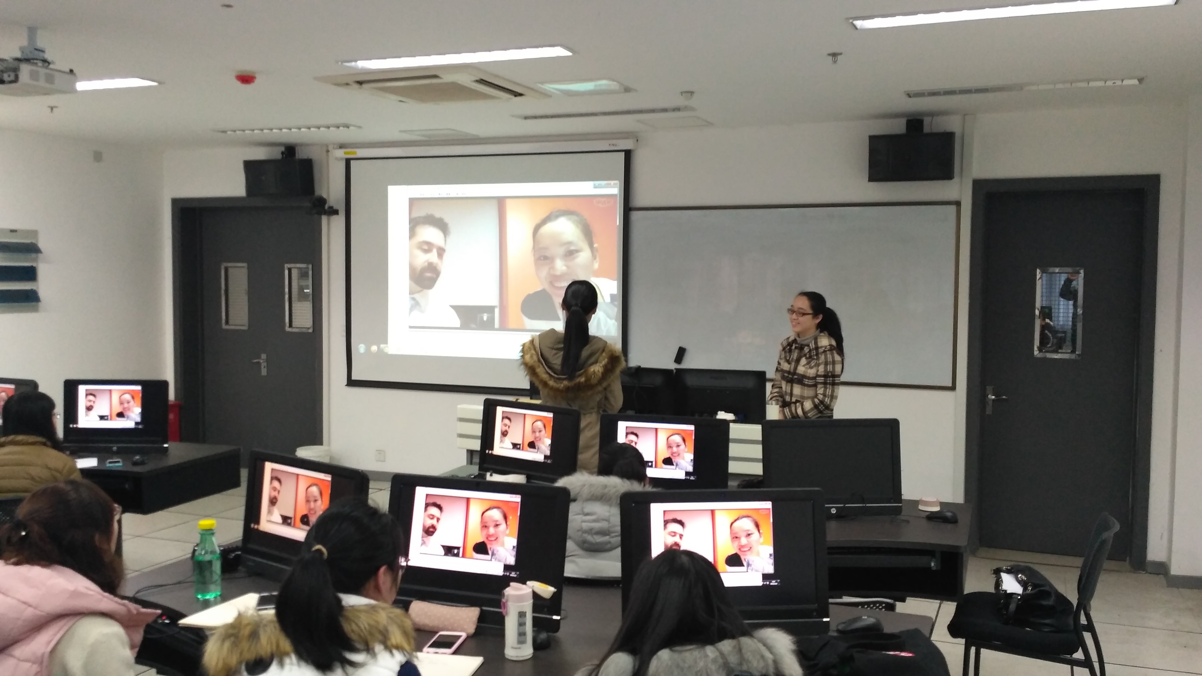 为更好地推动外国语学院国际化合作交流,积极充分地利用海外师资,引入国际通行的学术思维,12月2日上午,美国宾夕法尼亚州资深中小学写作教学专家Mr. Edward Gundrum和宾夕法尼亚州立大学教育学院在读博士张俊贤老师联合 日本色情片 学科教学法教师赵玲莉老师一起为英语141班师范专业的同学进行了题为“Using Narrative to Teach Writing”的远程视频授课。