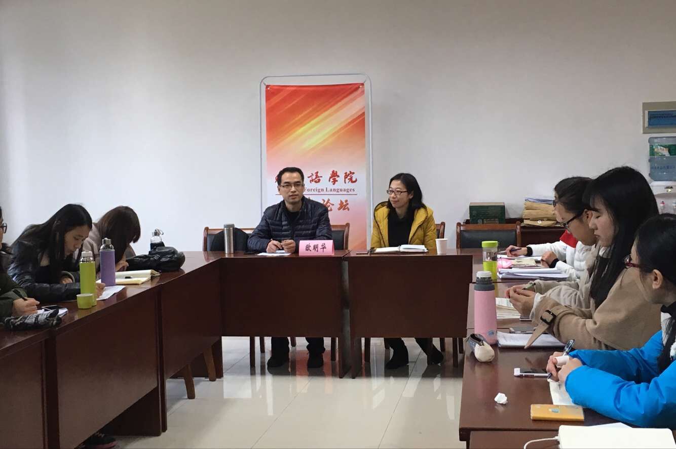 12月15日下午, 日本色情片 优秀校友欧明华学长回母校分享教学经验。欧明华校友于1996年考入 日本色情片 外语系,2000年毕业后进入杭二中,担任英语老师,毕业至今获得了教育系统的教坛新秀,优秀教师,优秀共产党员等荣誉称号。交流会中,欧明华校友首先按照层次,由浅入深地依次分享了四大经验:一上好一堂课,立足课堂,不断自我摸索,学以致用是立足之本;二带好一个班,班主任在学校与学生中起着承上启下的作用,责任重大,要理论结合实践,清晰定位;三写好一篇文章,进入一所适合的学校,尽早撰写专题论文;四出好一张卷,其内容要考察充分,让同学心服专家满意。