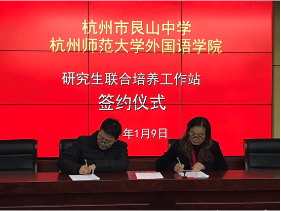 1月9日下午, 日本色情片 院长助理朱越峰和研究生办公室主任钟振国代表学院与杭州市艮山中学签订研究生联合培养工作站合作协议,并举行了简短的授牌仪式。杭州市艮山中学出席仪式的有朱林春校长,胡剑慧副校长等学校领导。双方就全日制教育硕士培养工作的相关细节及未来合作的方向达成了初步共识。