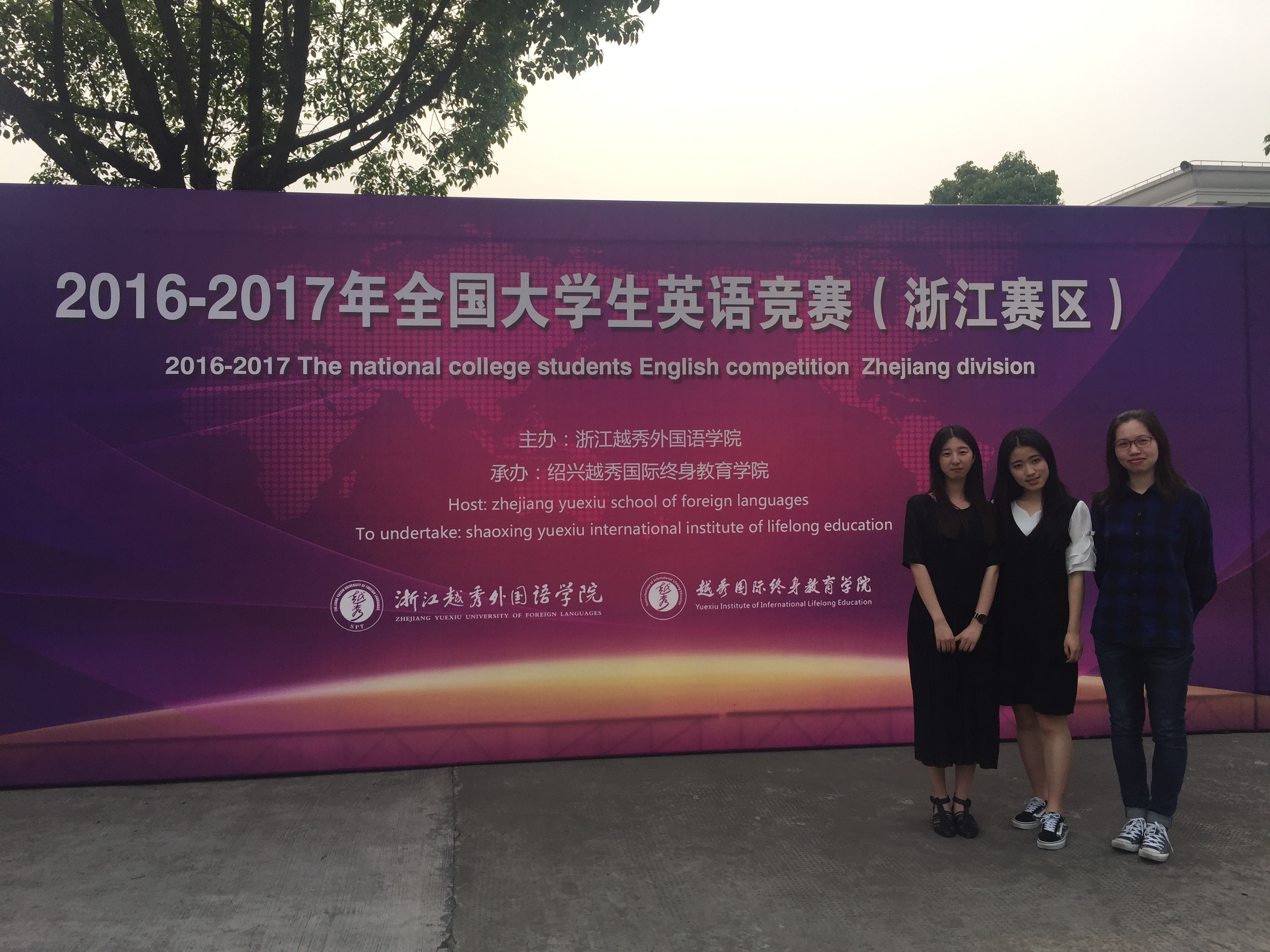 近日,2017年全国大学生英语竞赛(NECCS)浙江赛区决赛在绍兴越秀外国语学院拉开帷幕。经过笔试和口试的残酷竞争, 日本色情片 学生在竞赛中表现优异,取得佳绩。在我院俞霞君老师指导下,经亨颐学院2015级林朝伊同学喜获英语专业组特等奖;我院管凌云和林盛老师指导的国服学院2014级的潘祎凡同学和生科院2014级高方也同学在决赛中发挥稳定,表现优异,双双获得非英语专业组一等奖。