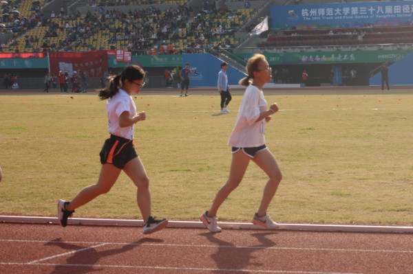 两位选手一位早已大四,一位是大一新生,在接近四圈的1500米“小长征”里,颇有老将带新兵的意味。肖玉玲同学挑战自我,享受比赛的运动精神实在值得我们学习。大一的王佳惠同学表示对成绩留有遗憾,希望能来年再战,取得和学姐一样的优异成绩。