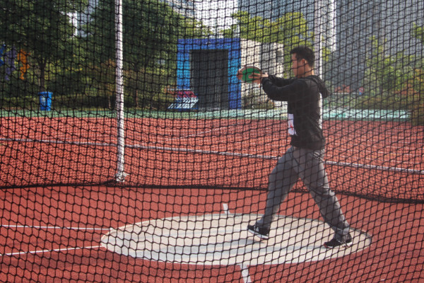 为了赛场上的一次次投掷,胡文荃同学做足了准备。铁饼和它外表看起来一样,拿在手里沉甸甸的。因此,这对运动员的力量要求和爆发力要求都是极高的。手握铁饼,旋转,侧身,奋力掷出,一系列动作都充满了力量,每一轮比赛都稳定发挥。铁饼在空中一次又一次划出美丽刚健的弧线,尽管在每一轮过后运动员的力量会有所损失,但铁饼下落的位置却丝毫不比前一次近,每一次落地都有着不俗的成绩。沉着、稳重是胡文荃同学给大家留下的印象,一次次的投掷,虽然成绩不是全场最佳,但他的每一次发挥都很稳定,最后不出所料地取得名次,位列第五。阳光下,运动员的汗水与笑容都证明了,这一切付出都是值得的。每一次投掷的背后都是无数次的练习,每一次完美弧线的背后都是一次次不完美的操练。