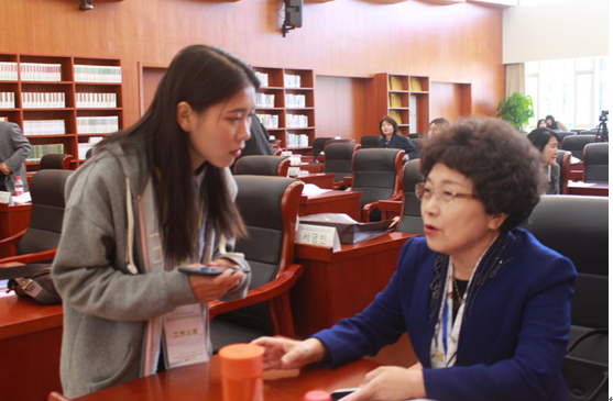 开幕式结束后,与会学者们进行了短暂的中场休息。记者有幸采访了国务院学位委员会学科评议组成员、 “中国朝鲜—韩国文学学会”理事长、“全国首届百名高校教师名师奖”获得者、 “全国先进工作者”(2010)称号获得者,同时享受国务院津贴的延边大学博士生导师蔡美花教授。