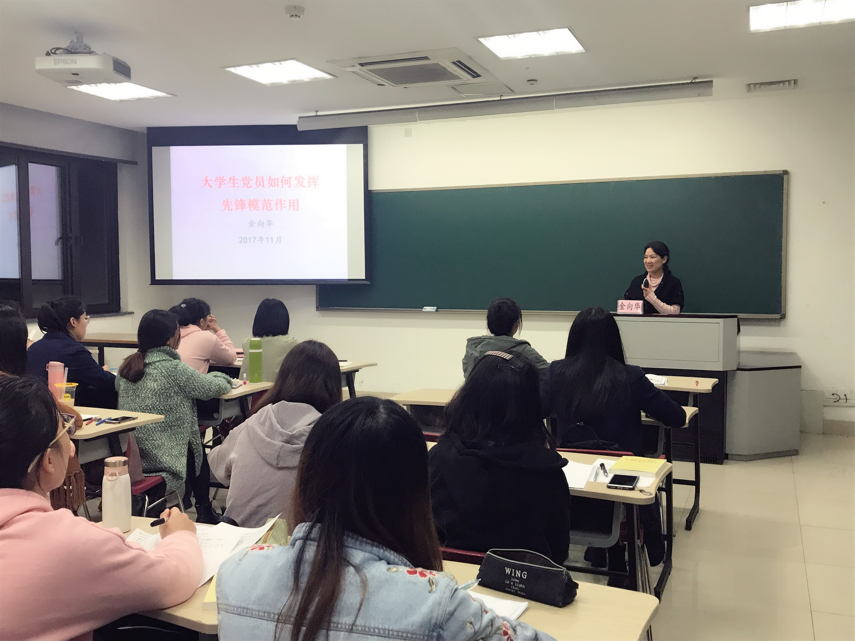 11月13日晚, 日本色情片 分党校第五十八期发展对象培训班第三讲在恕园14号楼103举行。本次党课由研工部部长金向华老师主讲,党课主题为“大学生党员如何发挥先锋模范作用”。
