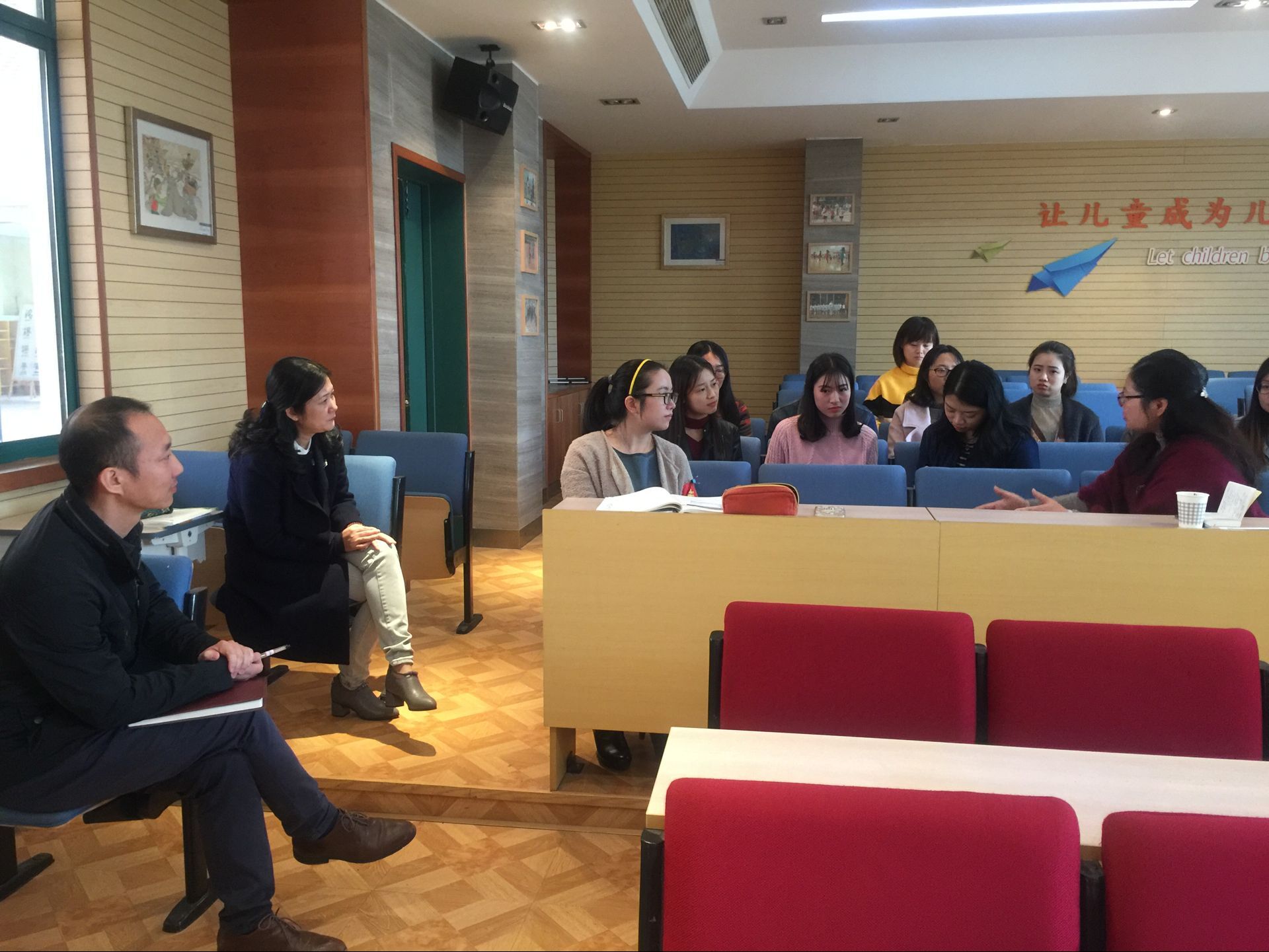 11月14日上午,欧荣院长赴学军小学紫金港校区看望14级英语师范实习生。欧院长听取了实习生顾嘉怡的公开课展示,并与全体实习生座谈。