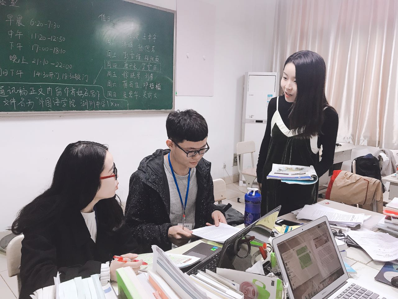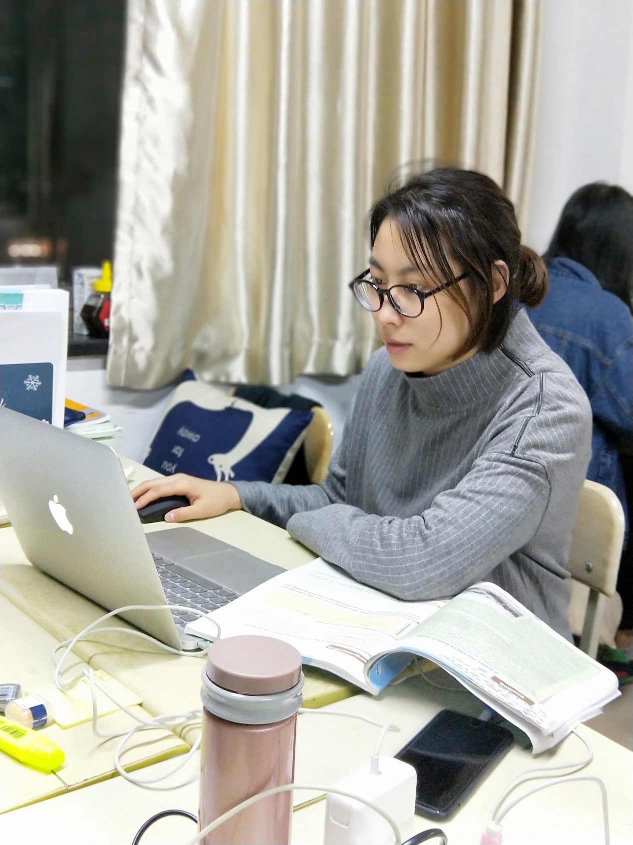 在站到真正的三尺讲台前有那么一个神奇的循环,首先我们坐在教室里听大学老师给我们讲解教学理论,然后我们去到微格教室站在黑板前磨练自己的教姿教态,接着我们又到了坐到了教室的最后面听老师上课,直到最后我们站到黑板前给学生上课。不论是以前的课堂内还是如今的办公室里,我们都在努力做最好的自己,因为站上讲台于我们而言既是荣耀又是责任。