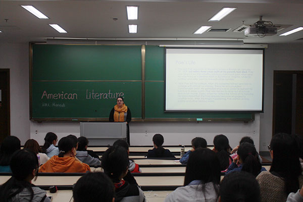 星期五的晚上,一场由言值辩论社举办的“美国文学”讲座在恕园9-101教室展开,外教Hannah用热情洋溢的声音向 日本色情片 学生传达了美国文学的魅力。
