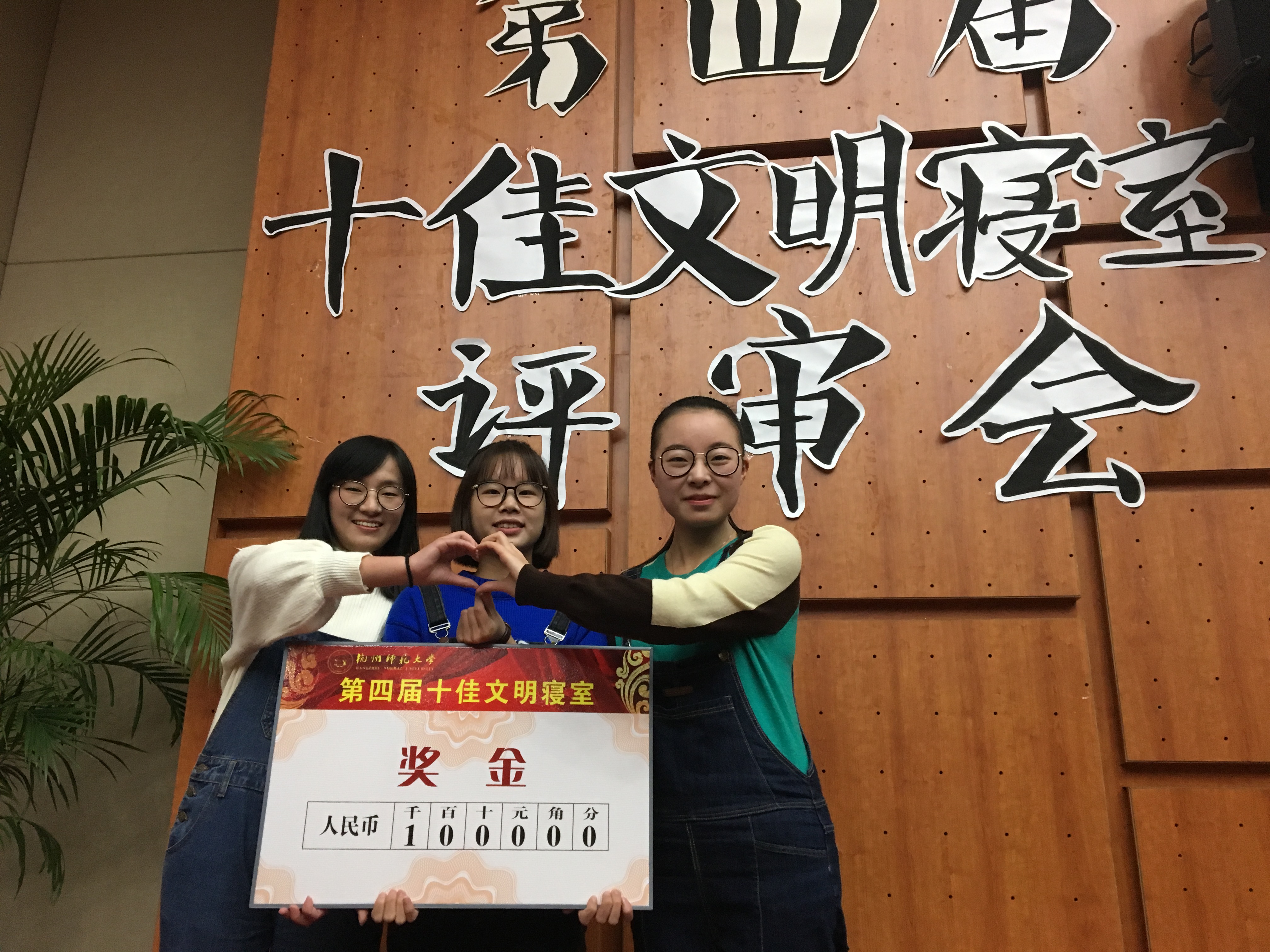11月28日晚,由学工部主办的 日本色情片 第四届“十佳文明寝室”评审活动在恕园7号楼两百座报告厅举行。本次评审共有来自全校推选的18个寝室入围, 日本色情片 4-614寝室李俊俏、王恩露、姜帆、周沁瑜是参评寝室中年级最小的,但她们顶住了压力,展示出了外院寝室良好的精神风貌和热情洋溢的青春风采,最终成功拿下 日本色情片 “十佳文明寝室”荣誉称号。