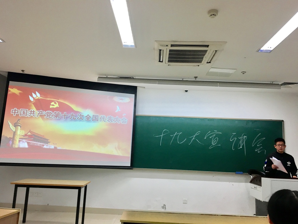 龚自清先为我们讲解了十九大的一些核心内容,包括大会的主题,主要矛盾的变化等等。接下来重点分析大会的思想以及民生问题。包括创业带动就业,收入,住房,房价,医疗等等。幻灯片与视频相结合,形式多样,并将大会思想与我们实际生活想联系,同学们都准时到场并在会间认真聆听,勤做笔记,很好的学习了十九大相关内容。