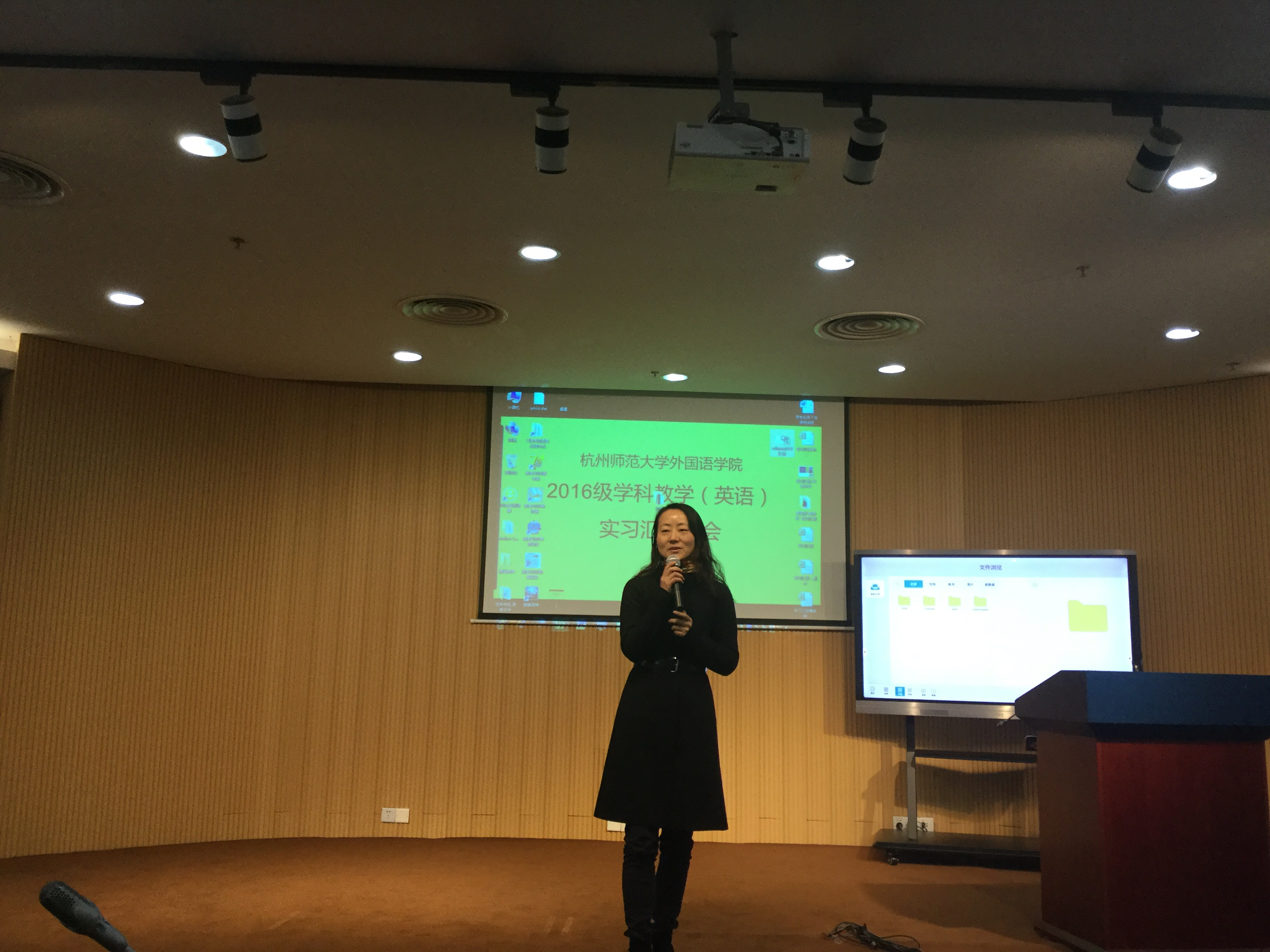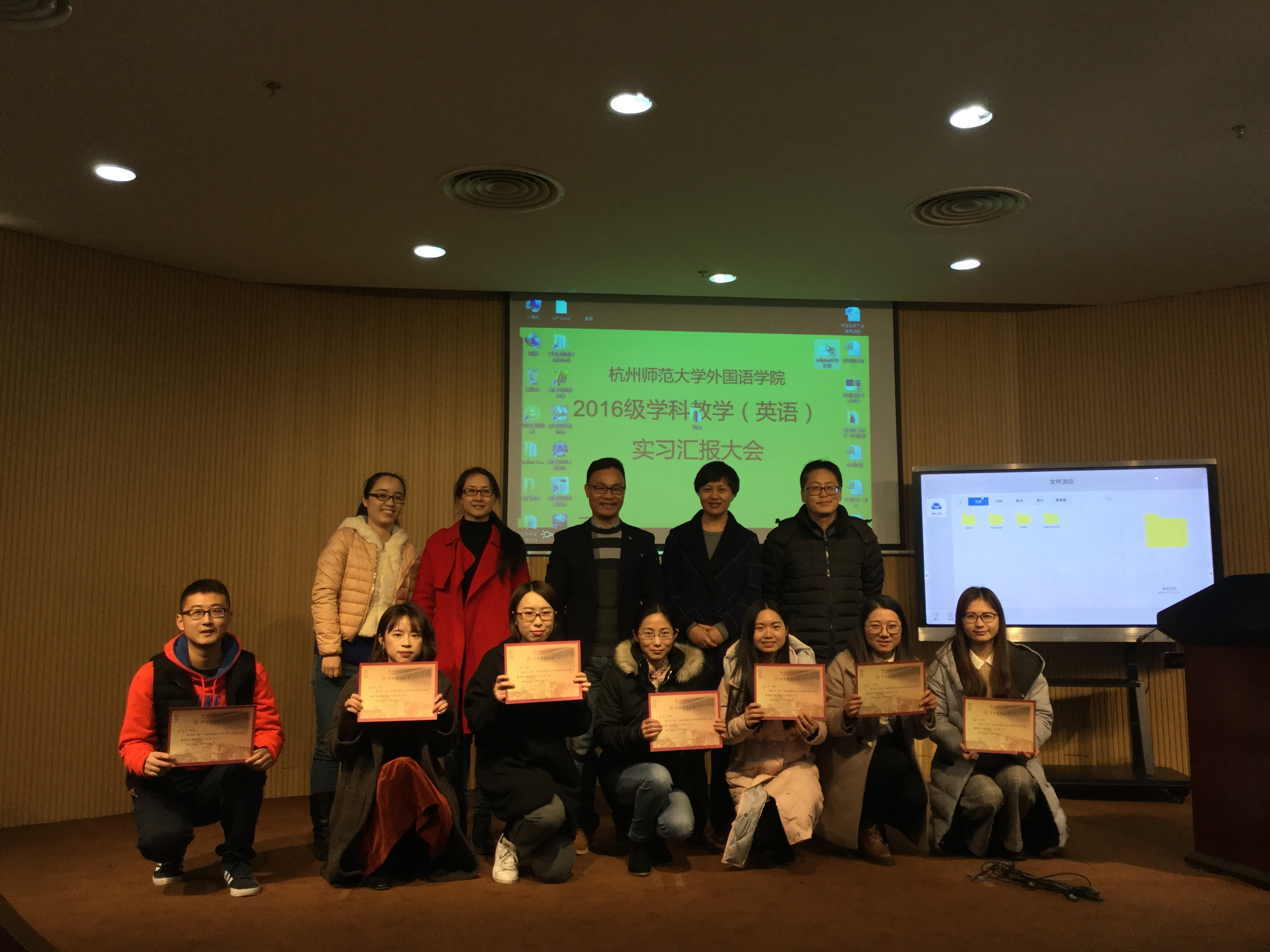 12月13日下午,外国语院组织了2016级学科教学(英语)专业研究生实习汇报会。出席汇报会的有外国语学院副院长、学科教学(英语)硕士点负责人李颖老师和实习带队老师朱越峰老师、俞霞君老师、马琳老师、赵玲莉老师、董琼老师、钟振国老师。