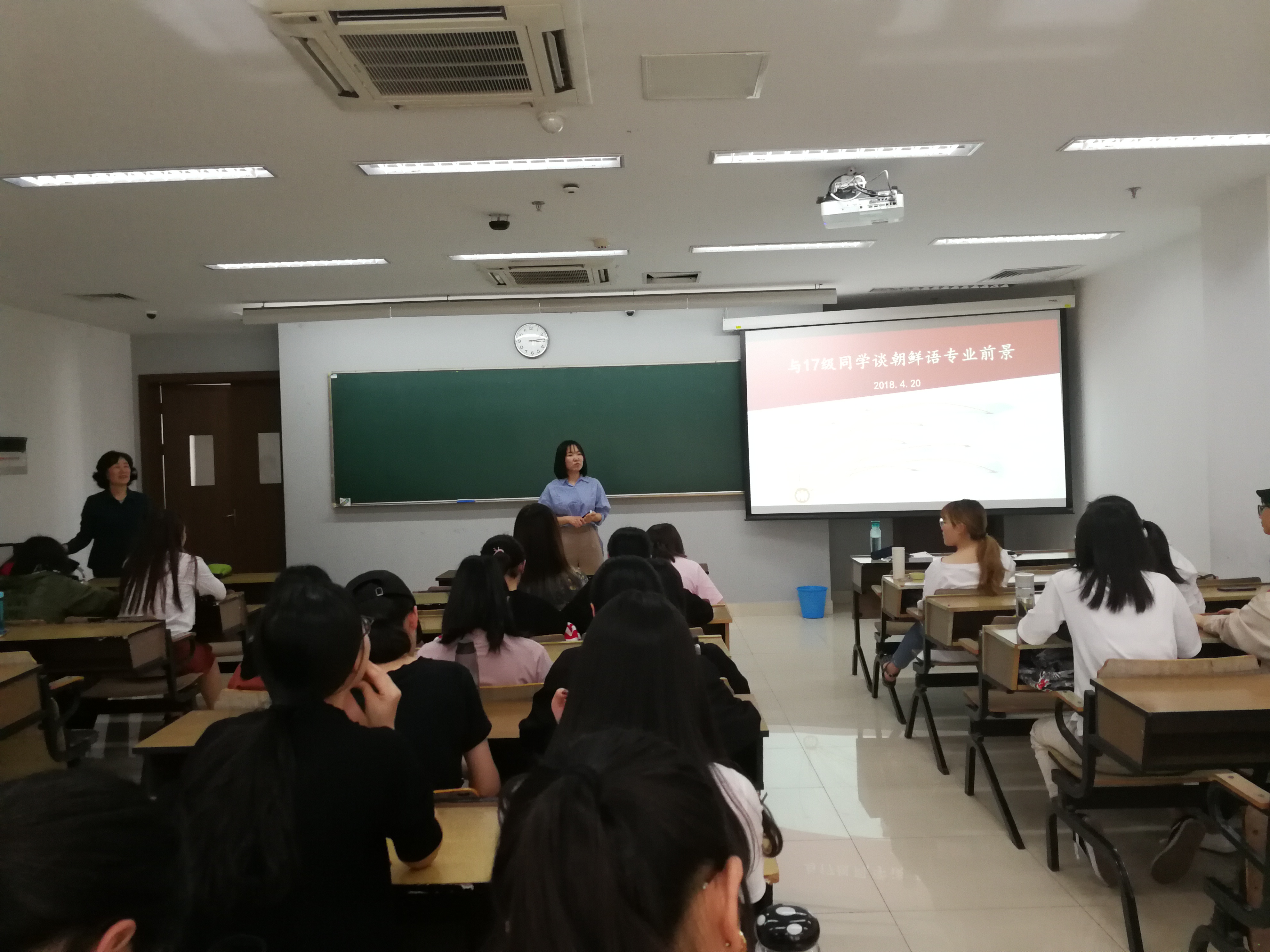 为了加深同学们对朝鲜语专业就业前景的认知,解答同学们在毕业就业问题上的疑惑。4月20日下午,朝鲜语系主任俞春喜教授在恕园10号楼为朝鲜语专业2017级的全体同学带来了一场精彩的职业生涯规划指导讲座。