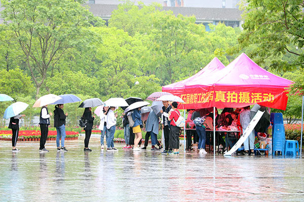 5月5日一早,三号食堂门口排起了长长的志愿者签到队伍。虽然大雨倾盆,志愿者们依然个个精神饱满,热情洋溢,面带微笑,迎接老师们的到来。本次活动的两百多名志愿者中,有对接教师志愿者,对接摄影师志愿者,也有机动志愿者等。大家各司其职,活动进行井然有序。