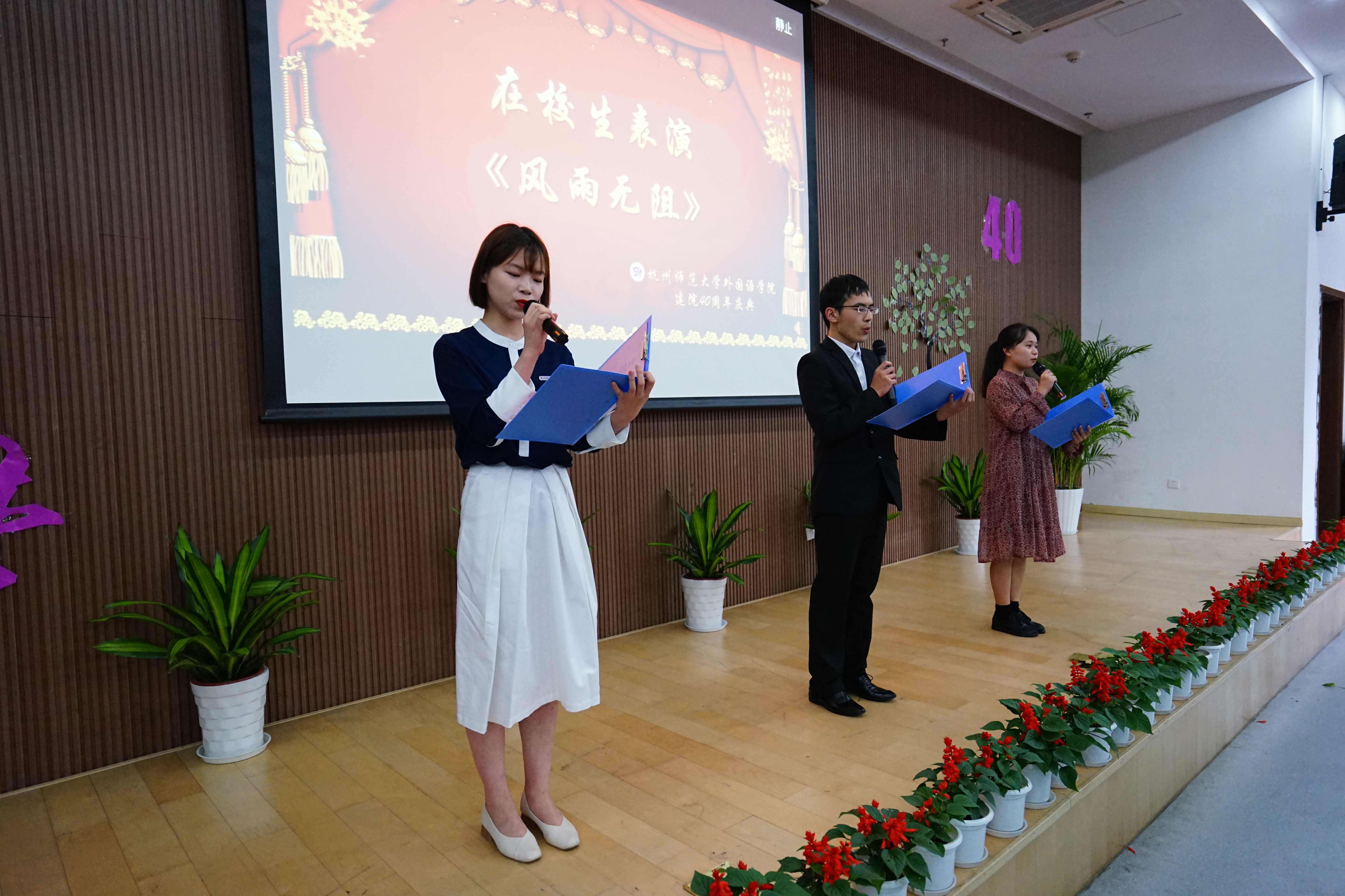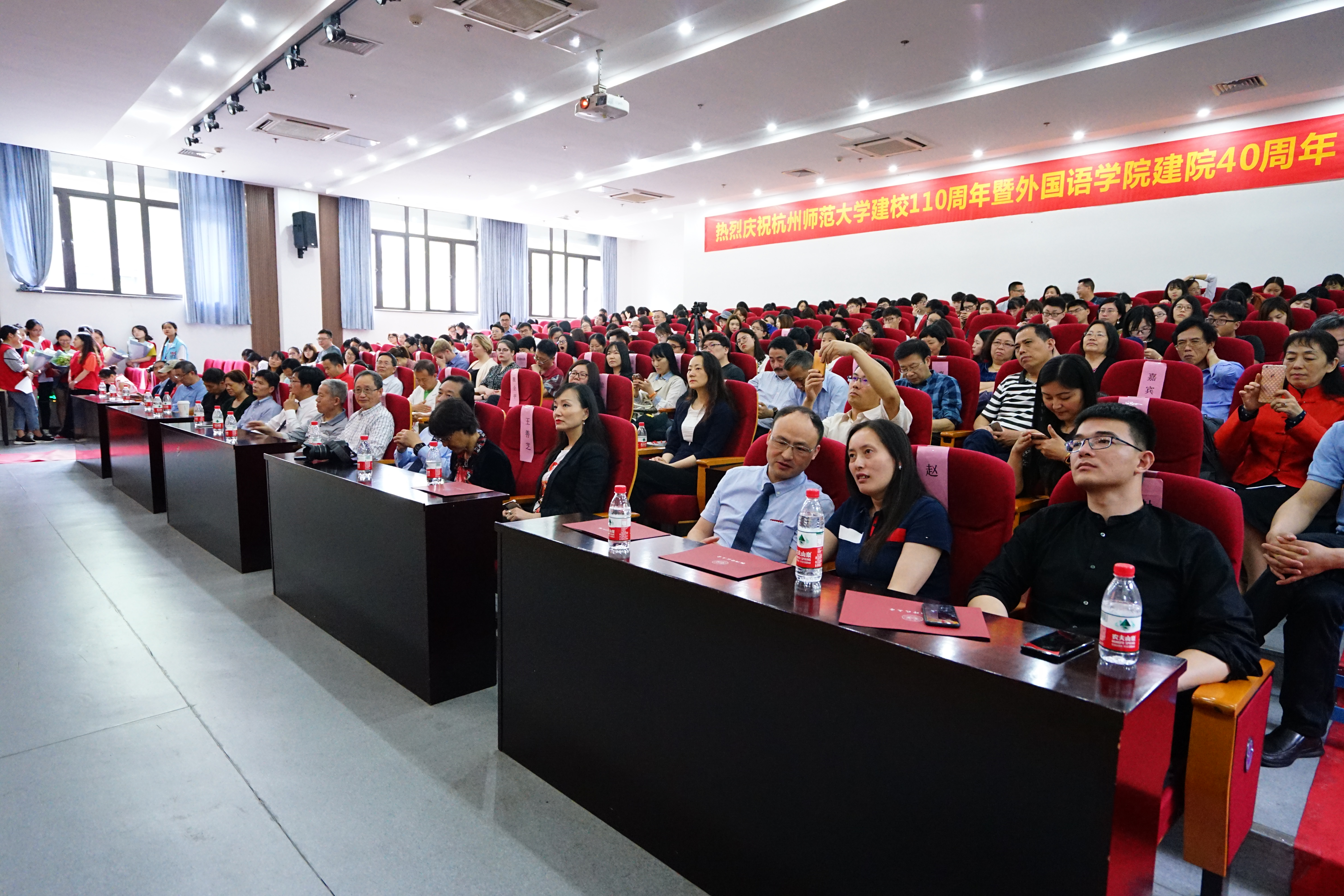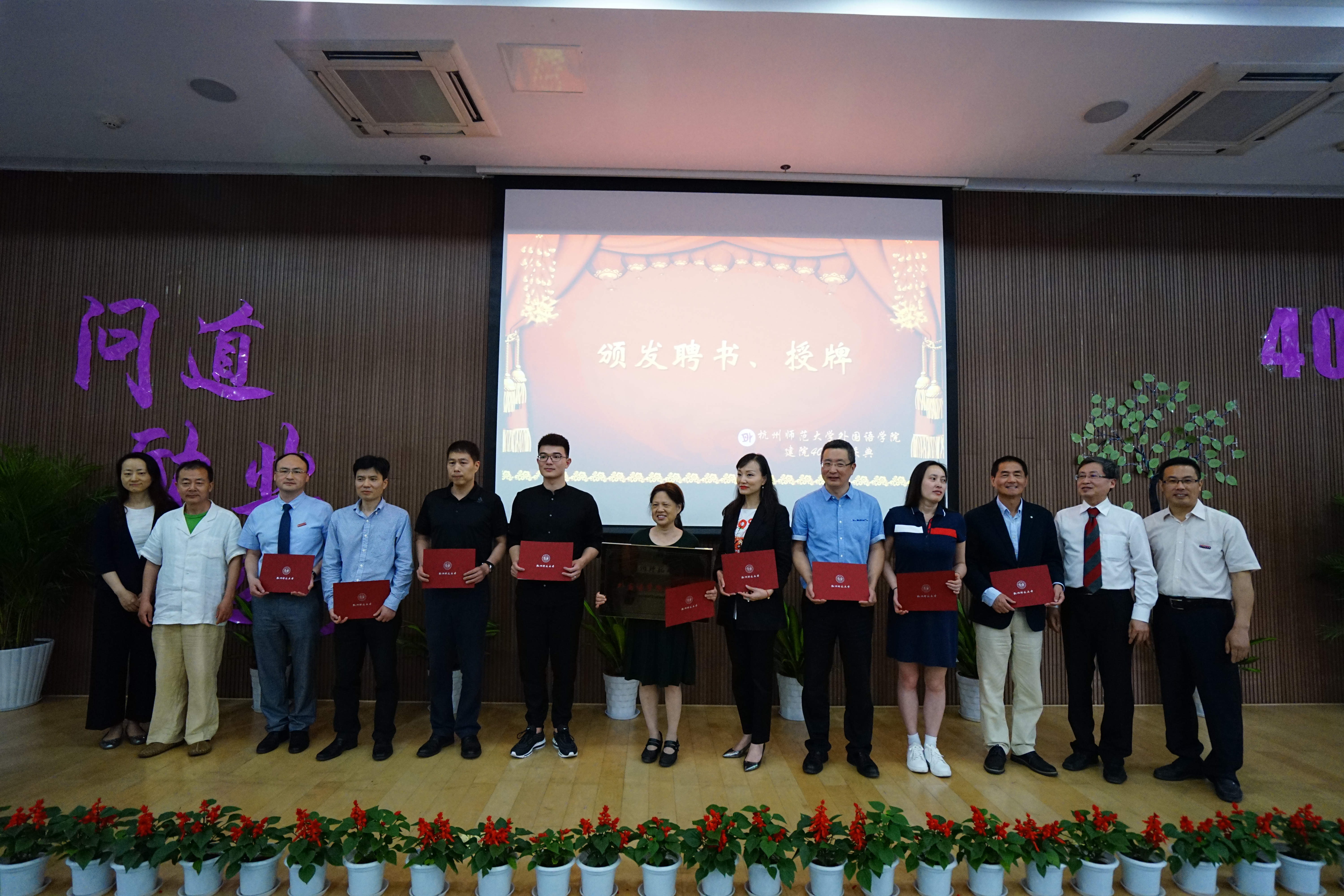 为庆祝建校110周年暨外国语学院建院40周年,5月12日下午13:30,“问道、励业、逐梦”建院40周年庆典在恕园19-109报告厅隆重举行。出席本次庆典的嘉宾有学院老教师、老领导代表、高层次人才代表、校友分会第一届理事会成员、全体党政班子成员以及250余名校友代表。