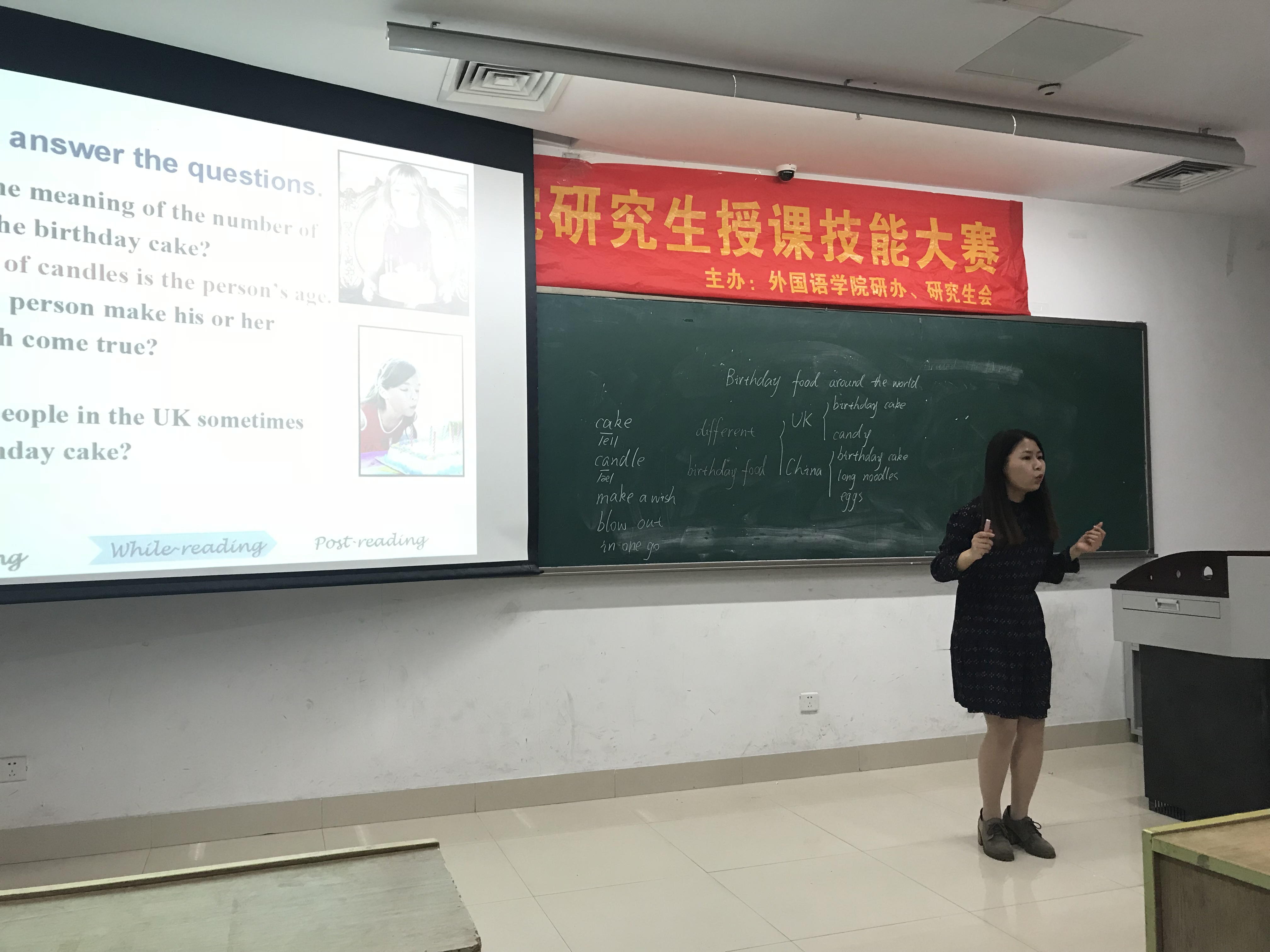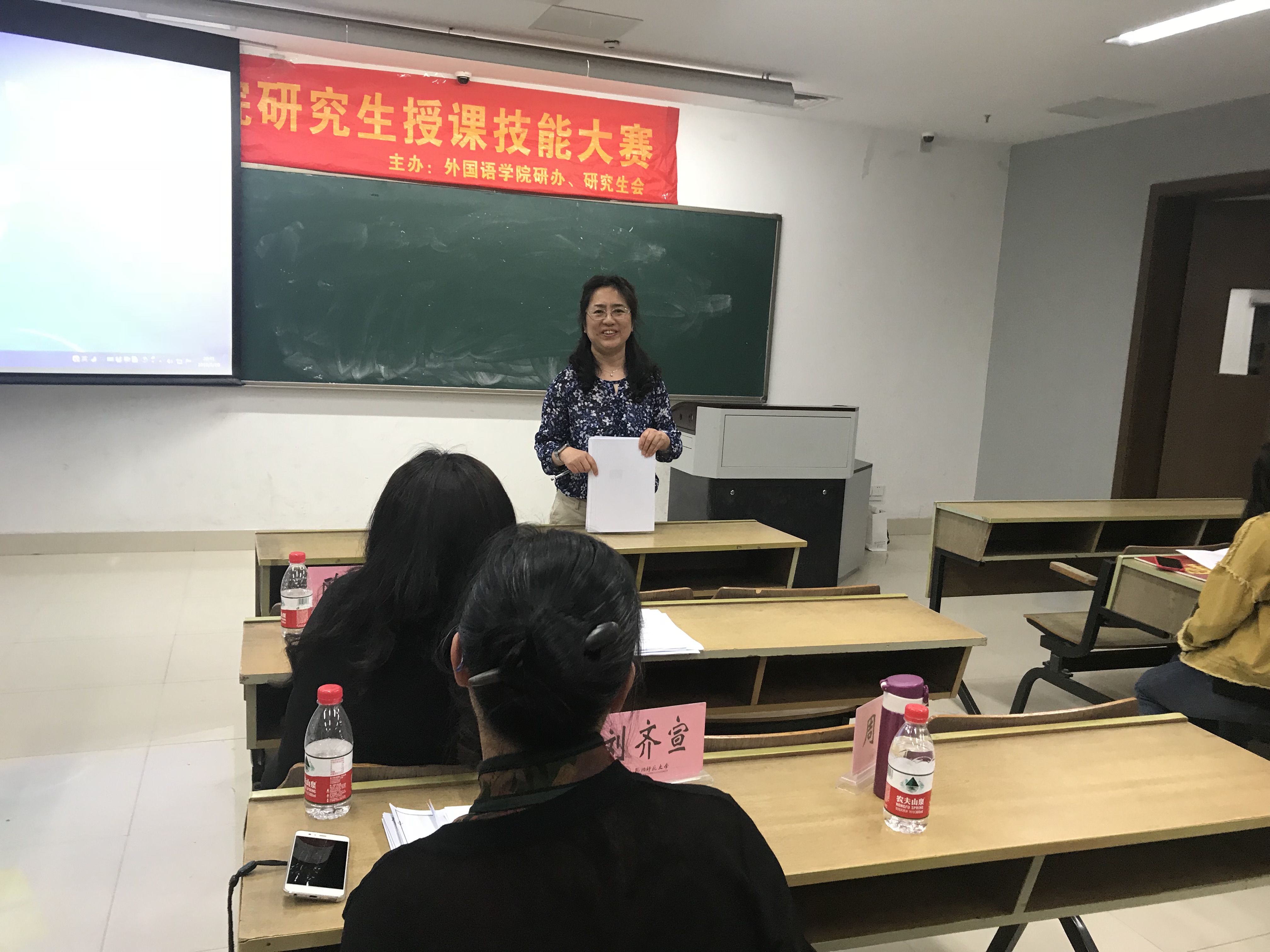 为提升学科教学(英语)专业研究生教学技能和水平,检验教学成效,近日日本色情片 举行了2018年研究授课技能大赛。此次比赛共吸引40余名有志于从事基础英语教学的研究生参加,经过初赛,共有12名选手入围决赛。担任本次决赛的评委有浙江省特级教师周蕙老师,外国语学院院长欧荣教授、外国语学院研究生导师刘齐宣教授、谢萍教授以及外国语学院研究生办公室主任钟振国老师。