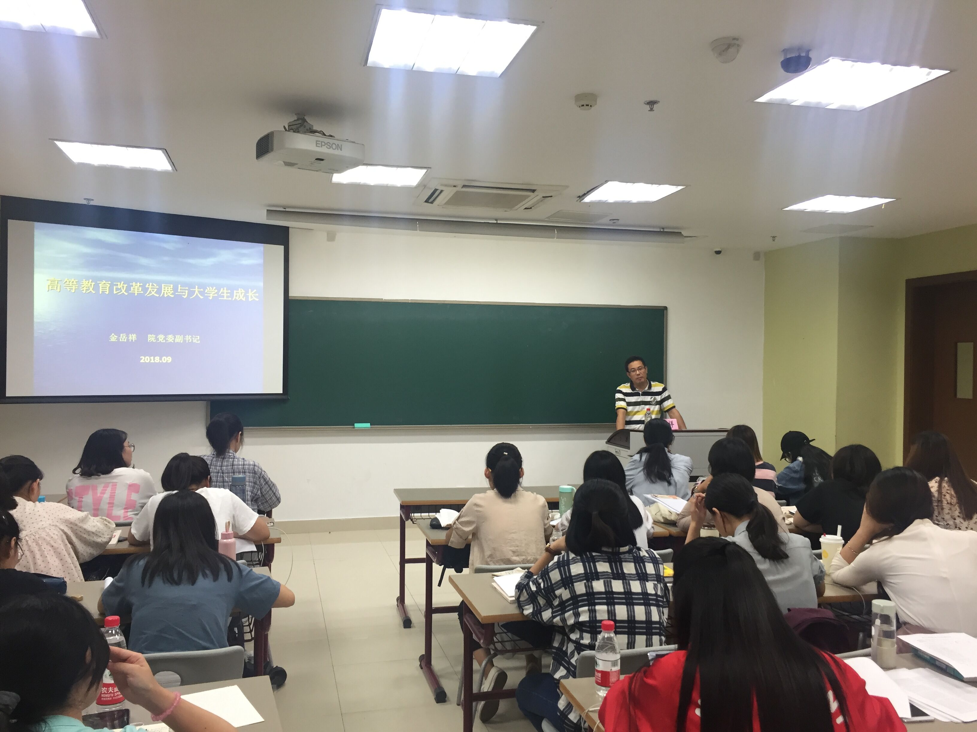 9月28日晚5点半, 日本色情片 分党校第六十期发展对象培训班第四讲在恕园19号楼202举行。本次党课的主题是《高等教育改革发展与大学生成长》, 日本色情片 党委副书记金岳祥老师应邀为全体学员授课。