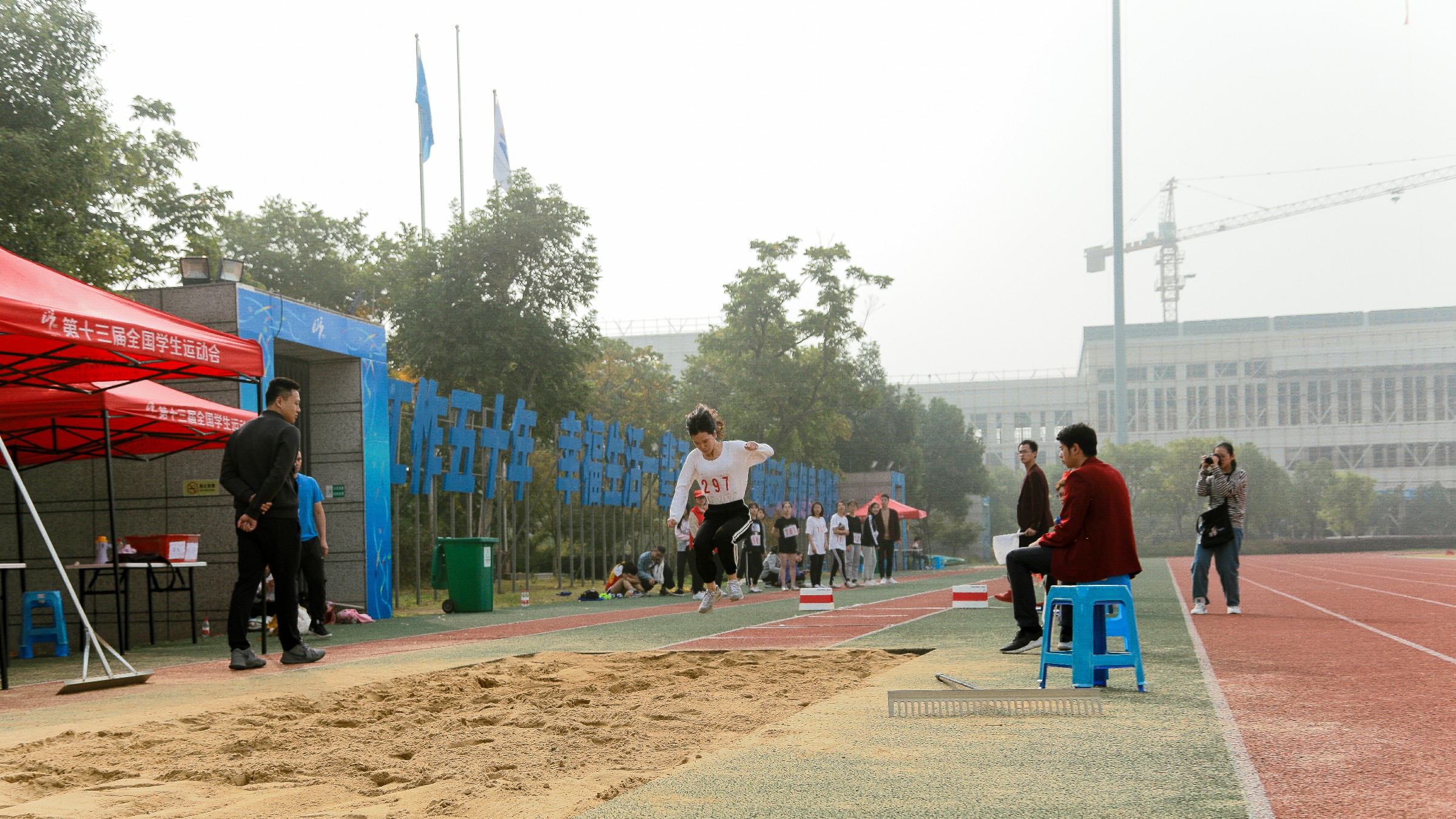 2017级的郑琳琳同学已是第二次参加三级跳远比赛,在去年校运动会上她位列第七,今年再度参赛,则更进一步。相较于去年,第二次征战的她减了几分稚嫩,多了镇定与从容。尽管首跳并没有发挥出色,但这并未影响到后面几次的比赛。第二次跳时,她明显开始进入状态,助跑、起跳、落地整个过程完成得更加连贯,也顺利进入到了最后角逐名次的阶段。在同组内的比赛选手高手如云的情况下,她顶住了巨大的压力,拿出了自己最好的状态迎战。决胜阶段又较前两次有了巨大的进步,她在助跑时找准起跳位置与时间,一跃而起,最终取得了8米16的优异成绩。赛场上的她闪耀着光芒,散发运动者的活力,那用尽全力去拼搏进取的姿态洋溢着正属于她那美好年华的青春朝气。
