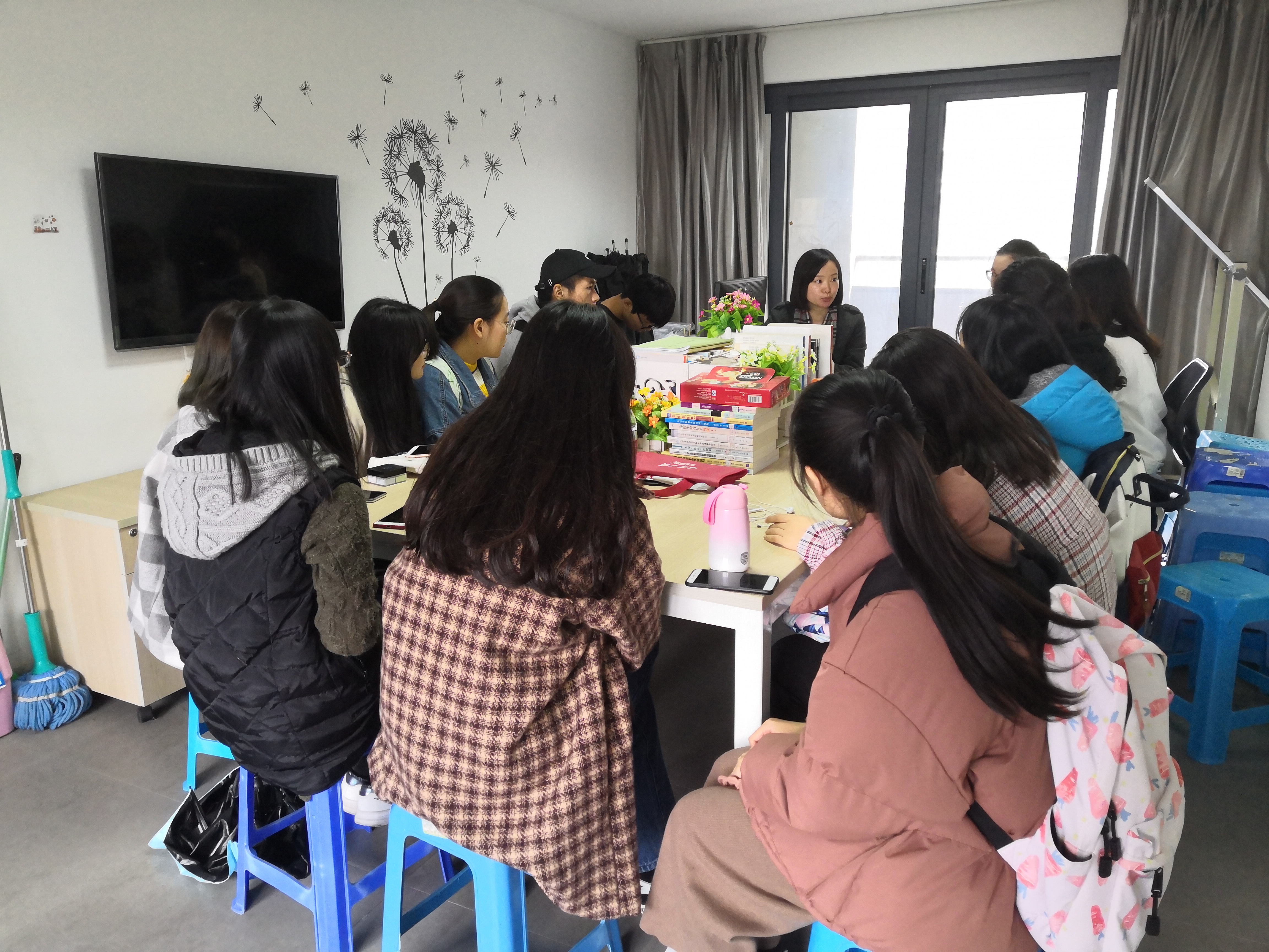 十一月二十一日下午, 日本色情片 教工党员卢美艳老师在博文苑5号楼334活动室给日语172班的十五位同学上了一堂印象深刻的生涯辅导课。卢老师以“如何有效分配时间,确立今后的目标”为主题,给同学们的日常学习和对未来的规划提出了很多有效的建议。