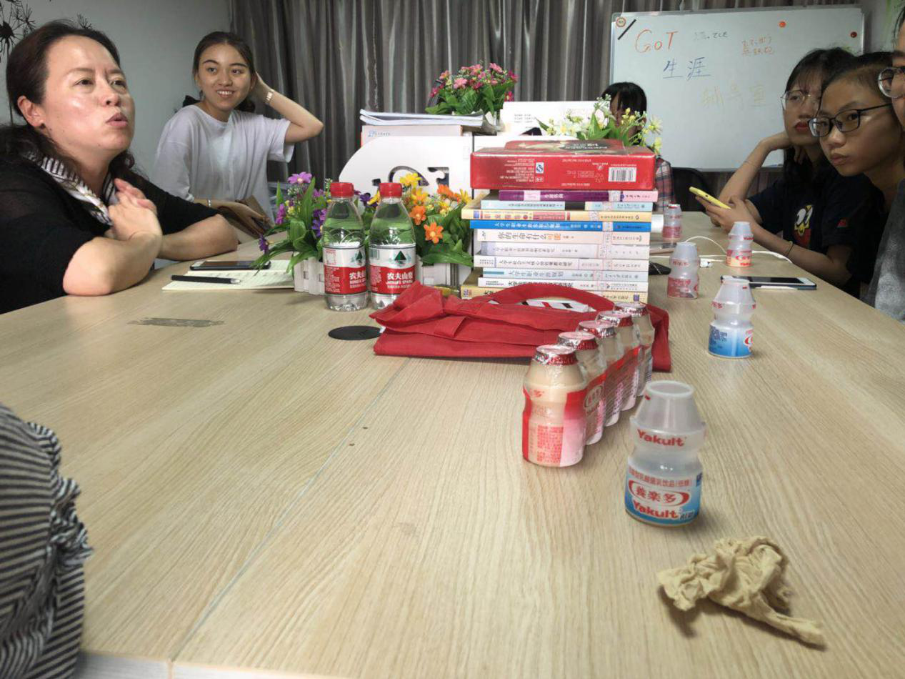老师很体贴,在这闷热天气里,给我们送来了养乐多。我们就边听老师讲边快乐地喝着养乐多。老师在开始就提出了她的设想,因为使用百度网盘在下载时可能会存在许多麻烦,她就想要在慕课上开设平台,方便我们上传作业也方便她批改作业。随后她感慨短短两个月我们从不会读到可以进行日常对话,只要打好基础一步一个脚印成果总是令人欢喜的。老师由此想起了自己养的月季,去年的时候很着急,但开出来只有两三朵最后还被虫子咬了不成型。今年她就细心呵护,耐心等待,结果开了48朵又饱满又漂亮的月季。