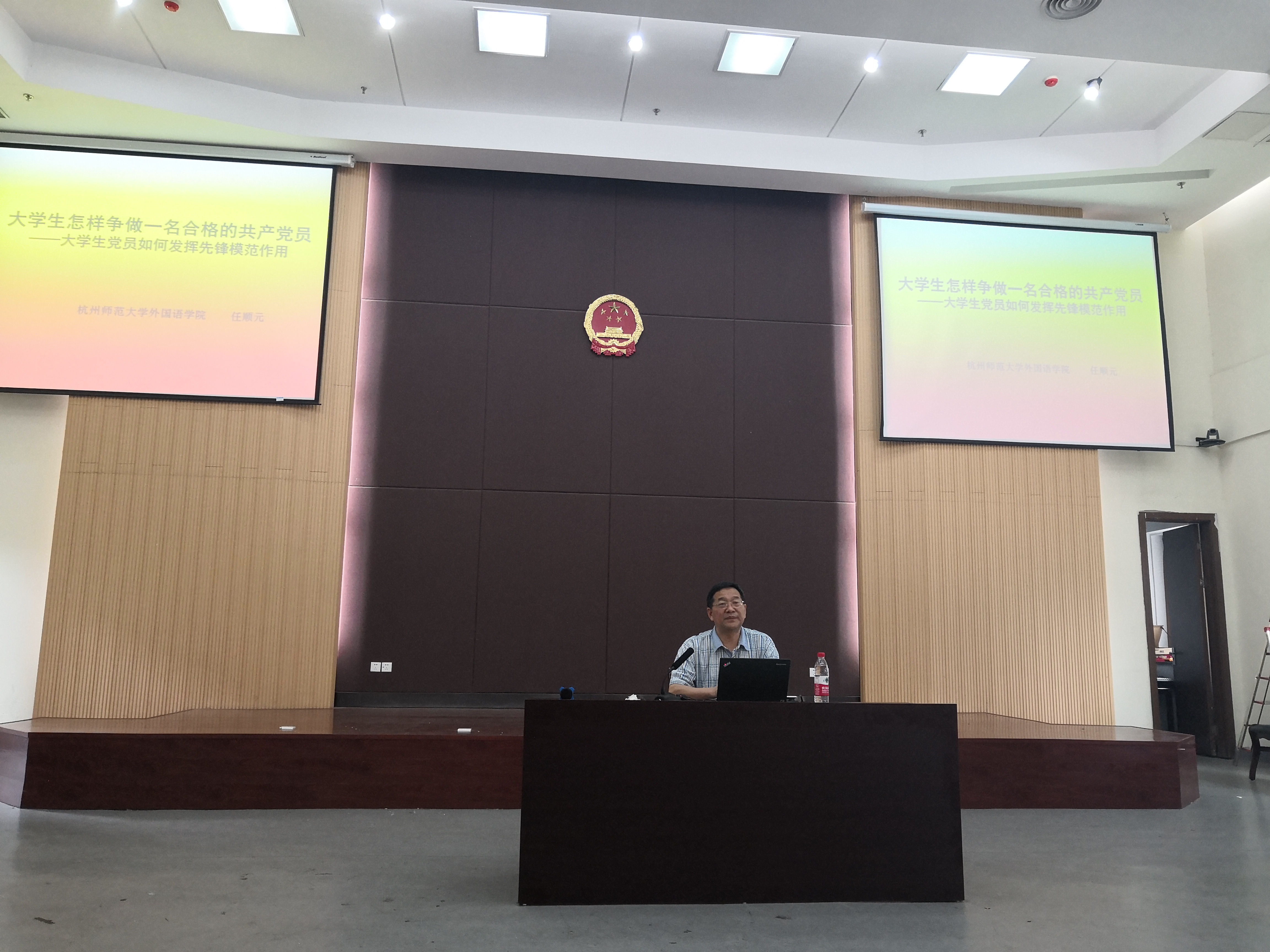4月24日下午, 日本色情片 分党校第十五期预备党员培训班及第六十一期发展对象培训班第三讲在恕园17号楼模拟法庭开讲,本次党课邀请到 日本色情片 党委书记任顺元老师,为全体学员主讲《大学生怎样争做一名合格的共产党员---大学生党员如何发挥先锋模范作用》。