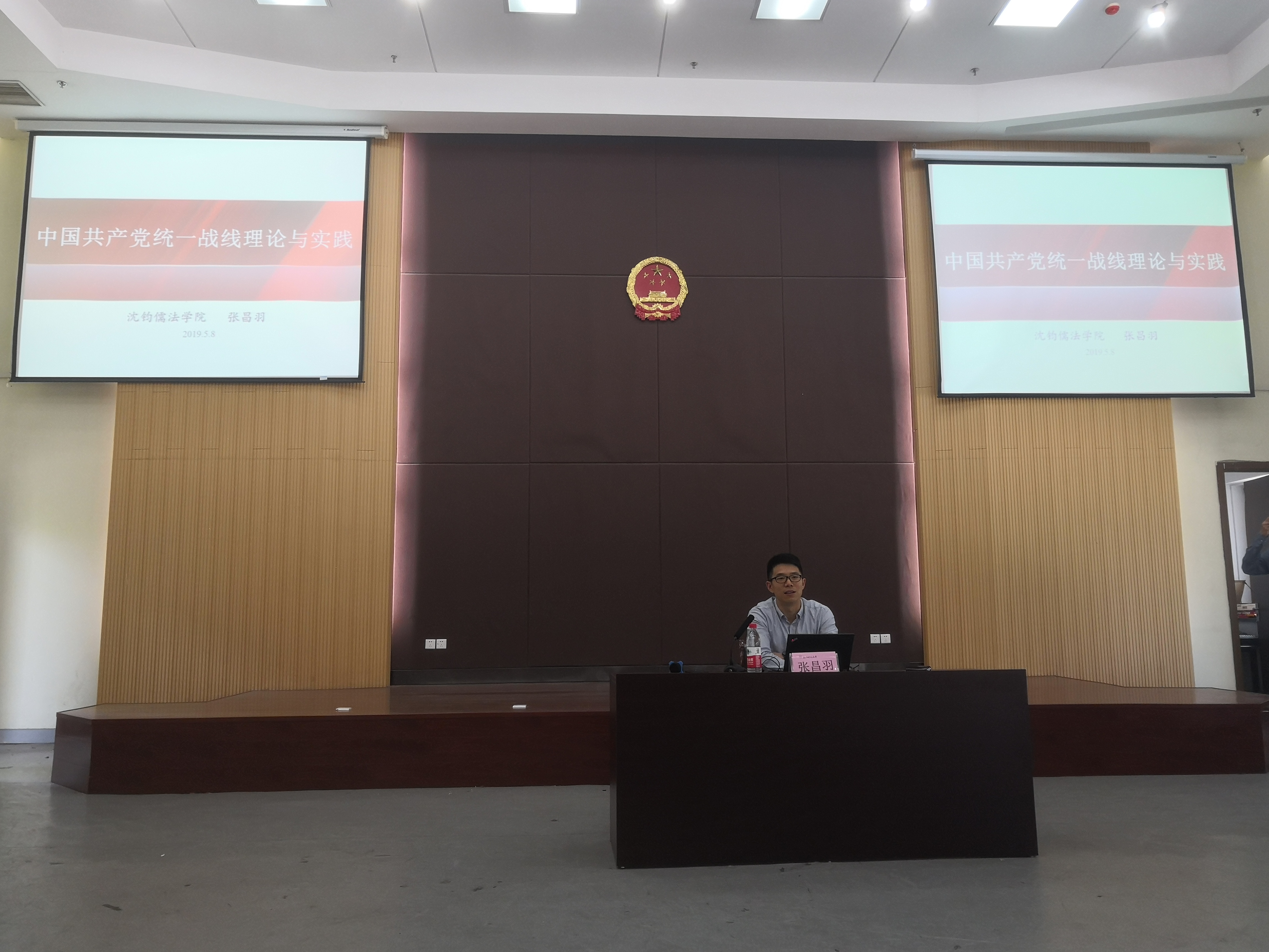5月8日下午, 日本色情片 分党校第十五期预备党员培训班及第六十一期发展对象培训班第五讲在恕园17号楼模拟法庭开讲,沈钧儒法学院党委副书记张昌羽老师应邀为全体学员讲授《中国共产党统一战线理论与实践》专题党课。
