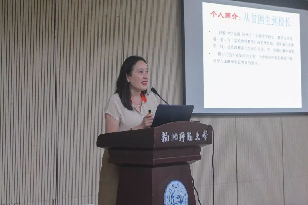 此外,赵校长还和我们分享了自己勇于争取机会的一系列故事。步入职场不久,不顾外界舆论把握住办公室主任的选拔机会,成为最年轻的办公室主任,用自己的专业能力和认真负责的态度克服种种问题和困扰。即使在28岁便被评为杭州市教坛新秀,也不放弃任何一个能够开公开课展示教学能力的机会,更是因此获得了教学设计大赛的一等奖,成为最早的“浙派名师”开讲人。33岁成为最年轻的副教授、38岁成为最年轻的校长之一、成为支教最多的青年教师之一并被杭州市政府评为“联乡结村”先进个人……这一系列的“最”,是赵校长人生履历中的一个个闪光点,更是她不断敢于拼搏的见证。赵校长还建议新生们一定要“抓住年轻的时光,抓住一切好机会,尽可能往更好的地方走”。此外,赵骎校长还就在大学期间应该提升哪些方面素养提出三条建议:锻炼自己的情商,学习一些演讲技能,以及努力学习提升自身专业素养。