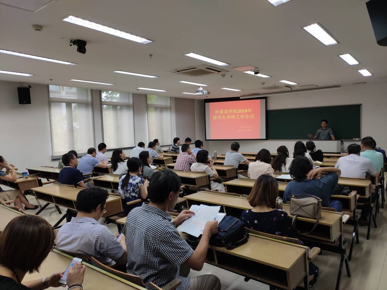 2019年研究生导师工作会议于9月18日下午在恕园11-305教室召开,近40位现职导师参加了会议,研究生办公室主任李中华主持了会议。