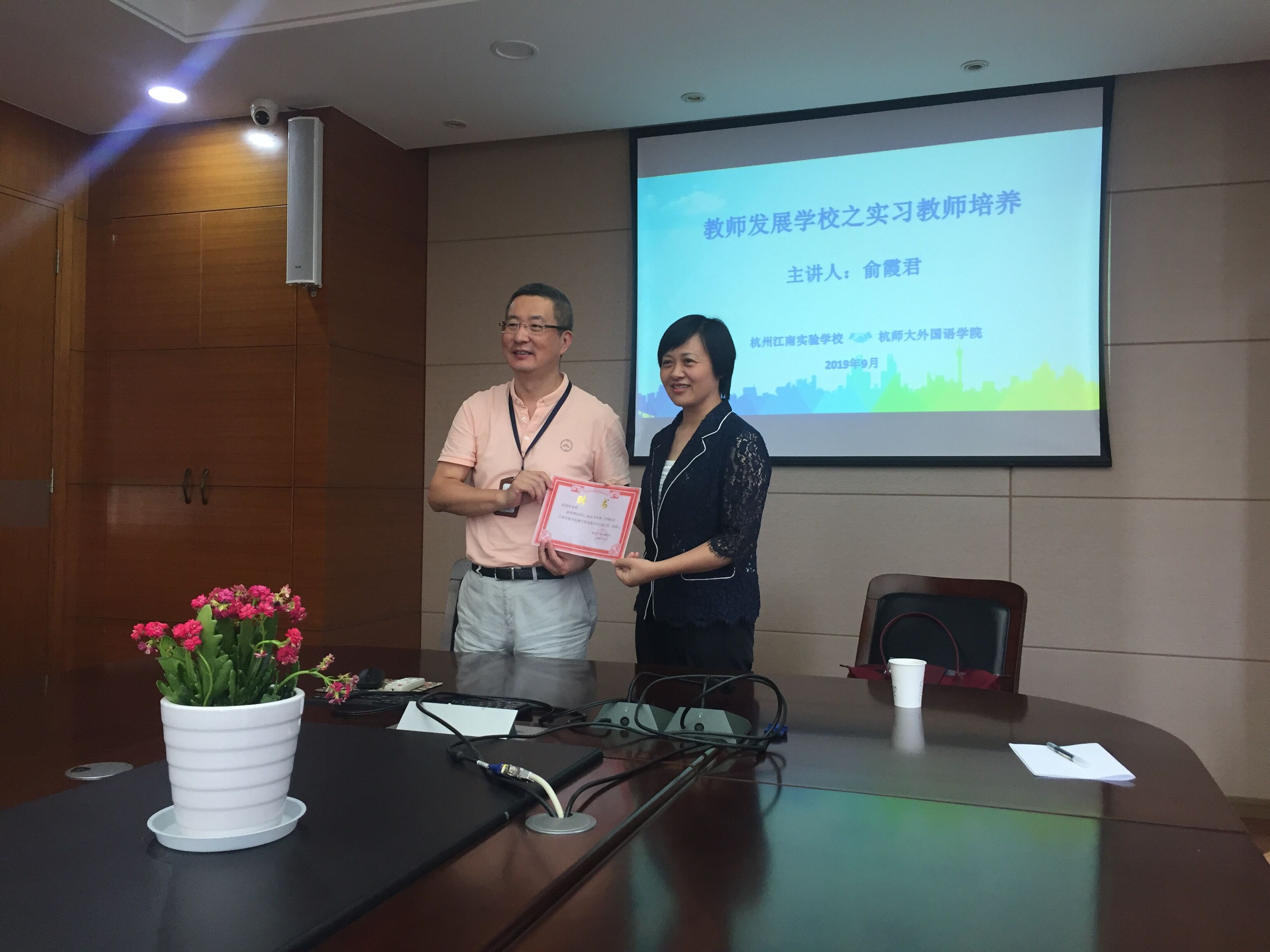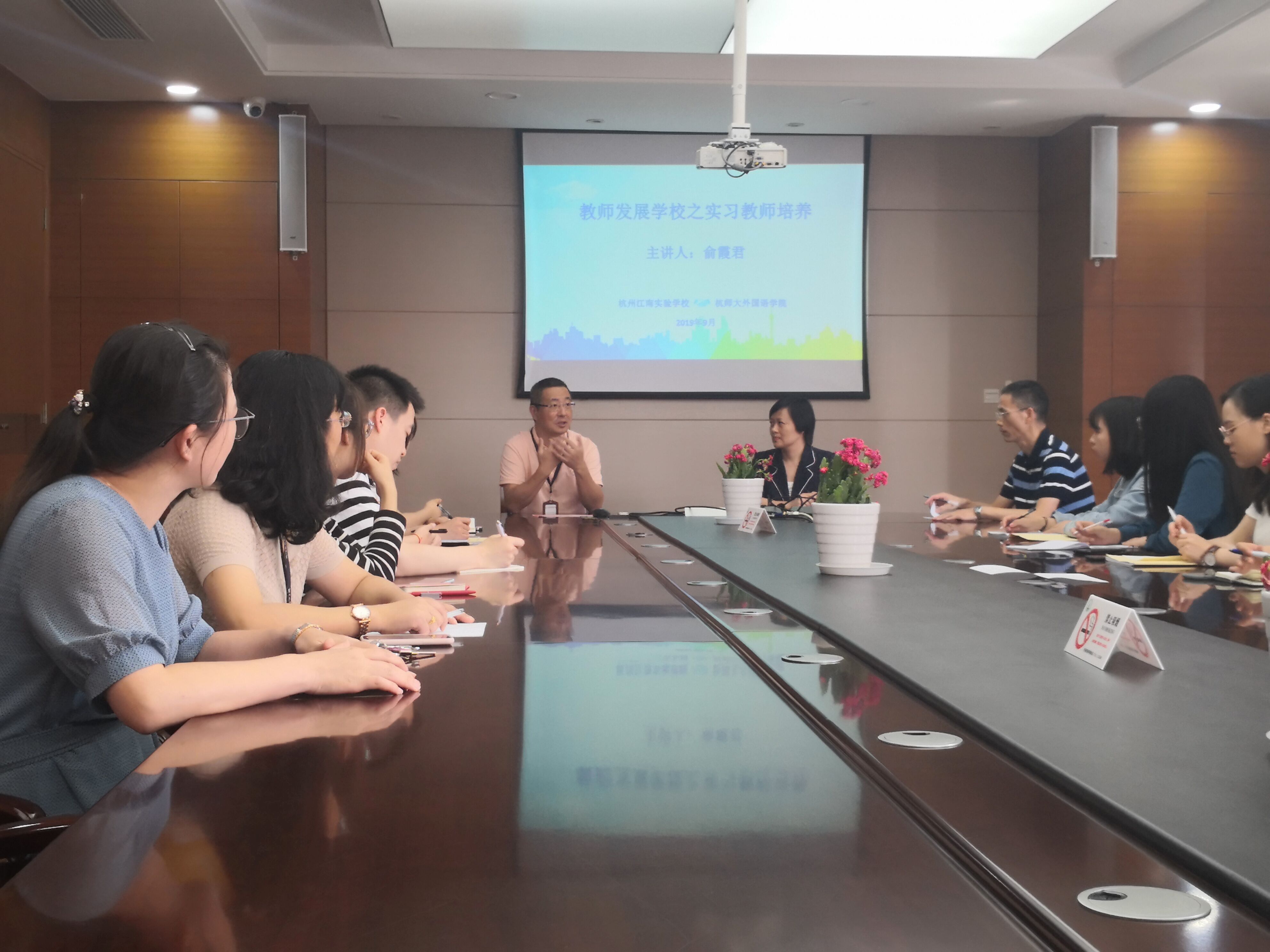 9月24日,江南实验学校邀请日本色情片 英语系主任的俞霞君老师带来主题为“教师发展学校之实习教师培养”的实习教师培训会。江南实验学校的金晓东校长、张钰平副校长、浙江省中小学正高级教师金明强老师、部分实习指导老师以及 日本色情片 学科教学(英语)专业的全体实习教师共同出席了本次会议。