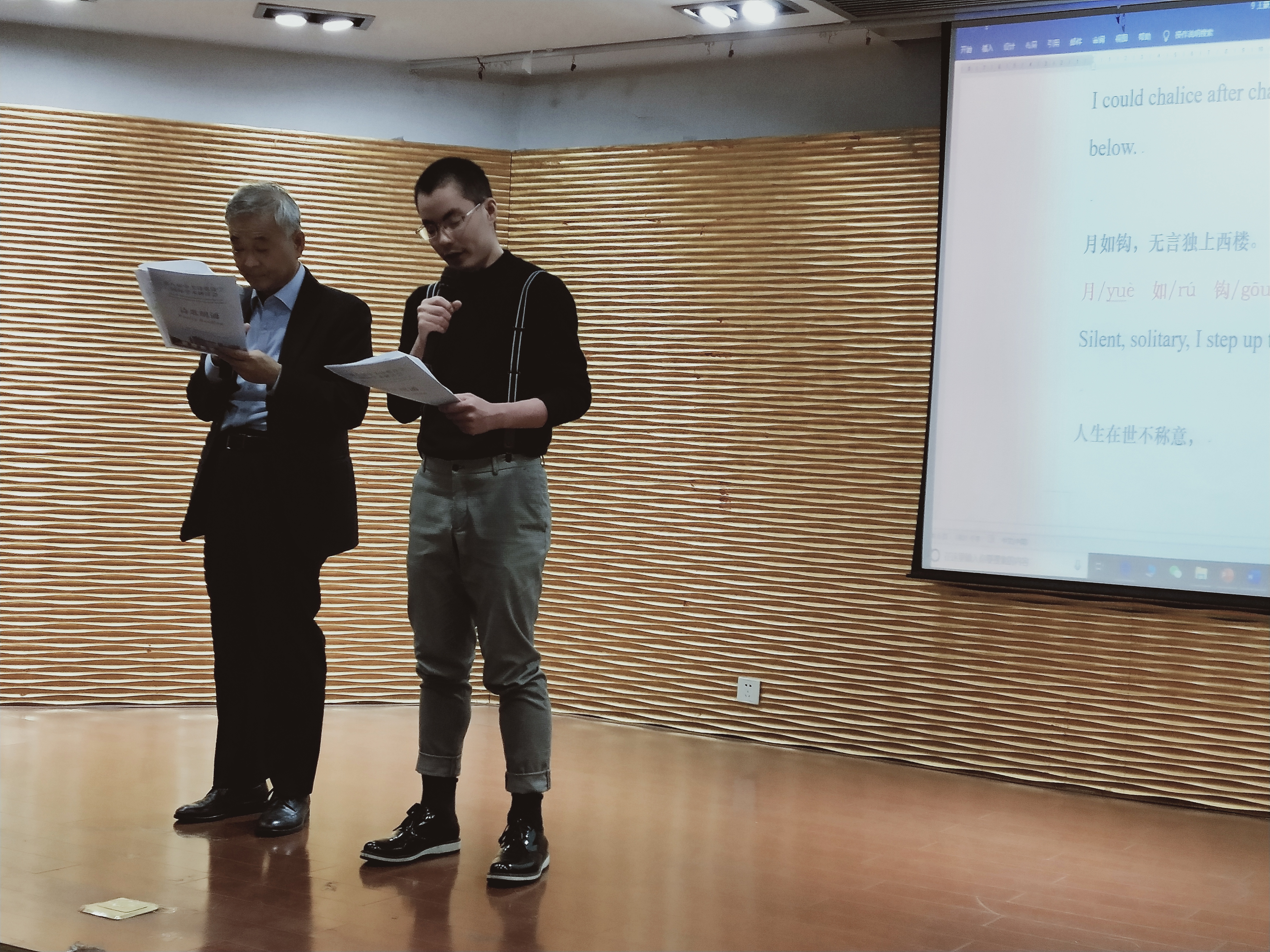 在11月2日晚上的诗歌诵读活动中,金英敏教授与王豪同学以中英双语共同朗诵了《夜·月·梦——李白诗演》(Night, Moon and Dream: A Collage of Li Bai and Other Ancients Chinese Poets),获现场专家学者的赞赏与肯定。据了解,该诗歌文本是王豪同学受相关文学课程启发,自主创作,曾于2018年3月在 日本色情片 的中外诗歌朗诵演唱比赛上首度登台演绎并获奖,后在英国爱丁堡大学的2019年苏格兰大学国际暑期学校中展演。