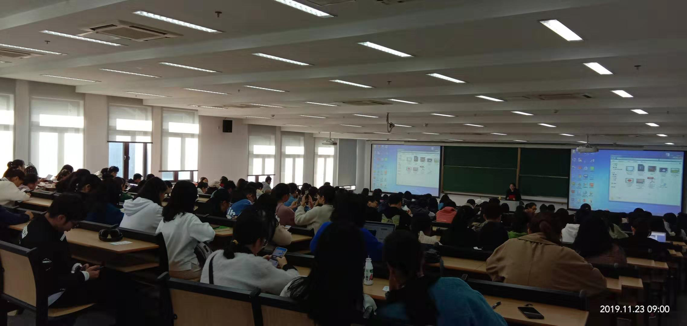 2019年11月23日上午九点,一如往常每个周六,总共可以容纳256人的恕园31幢301报告厅内座无虚席,因为每周一次的英语文化沙龙系列讲座又如期而至了。本次讲座主题是“Christmas traditions in the US”,主讲人是大外部党员张俊贤老师。张老师曾在美国留学多年,深谙美国文化。她从西方文化的来源娓娓道来,讲座内容丰富,涉及美国的历史,西方文化的去宗教化与泛商业化。听了讲座后,同学们对美国文化加深了了解,拓展了视野,启发了思维,特别是通过最真实的图片资料使他们加深了对美国圣诞文化内涵的了解,对于英语的学习又增加了不少兴趣。本次讲座又是周六的一道语言文化大餐!