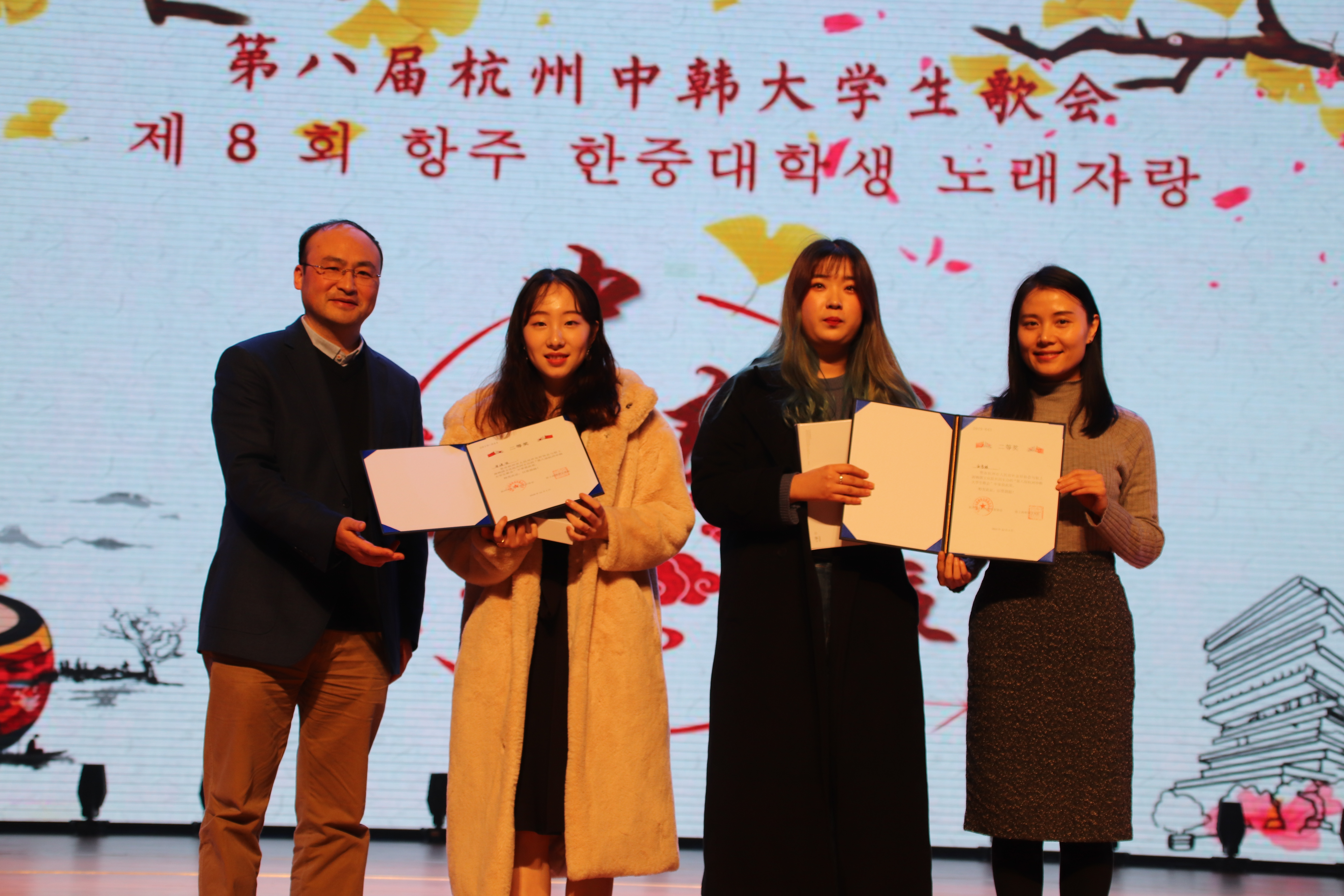 12月1日晚,第八届杭州中韩大学生歌会于 日本色情片 学术交流中心1500座隆重举行。杭州市国际交流处处长、杭州市人民对外友好协会办公室主任李道桥,驻上海韩国文化院院长金烘秀, 日本色情片 副院长汪学磊等数十位领导出席本次歌会现场。韩亚航空杭州分公司总经理崔东和,杭州大韩贸易投资振兴公社馆长李敦起等共四位嘉宾担任评委。金烘秀院长、 日本色情片 汪学磊副院长分别致贺辞,并向 日本色情片 和上届承办方浙江树人大学颁奖以表感谢。