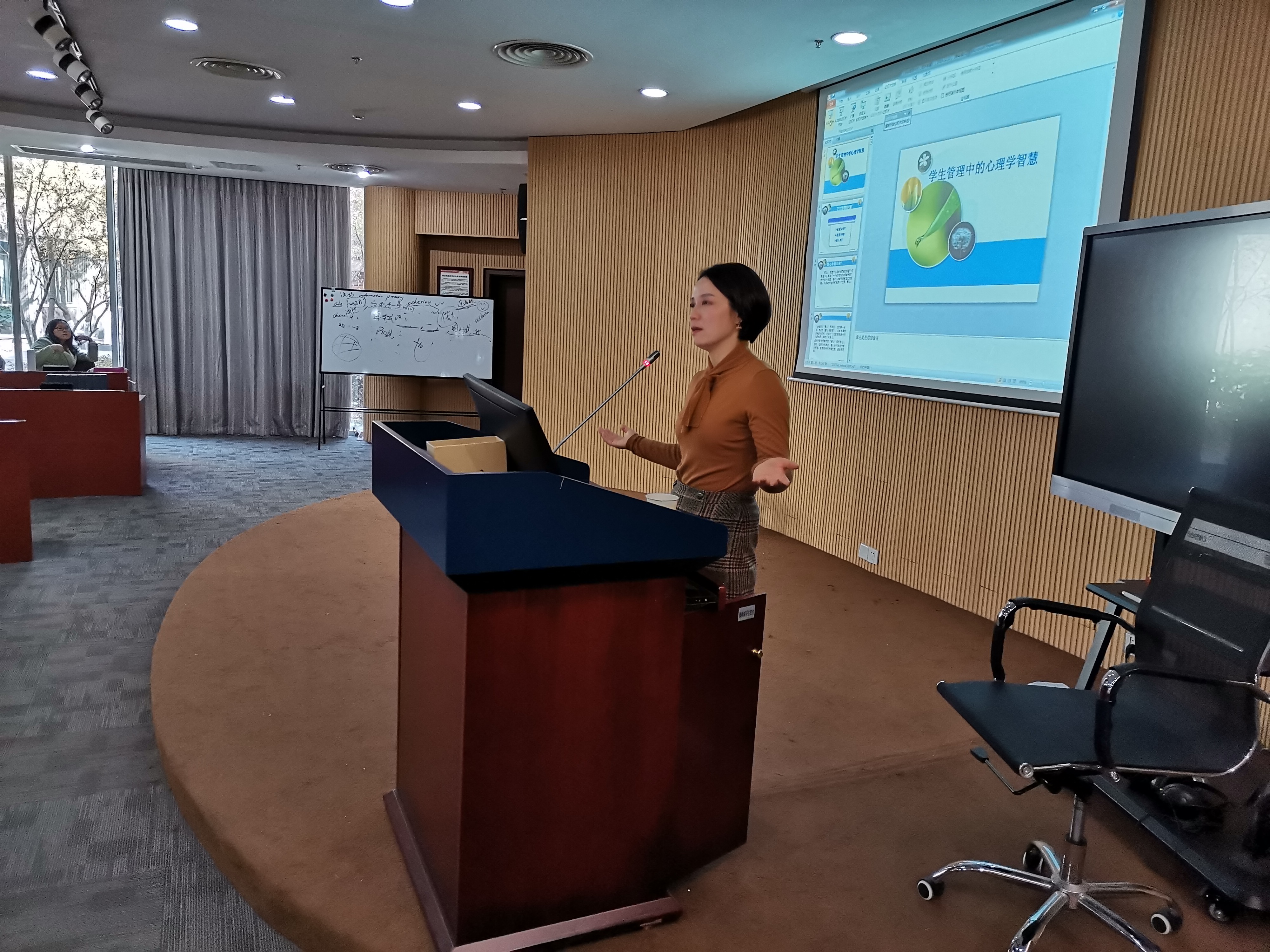 12月13日上午,江南实验学校老师徐晓莉应邀在 日本色情片 恕园25-106教室作了题为“班级管理的心理学智慧”的讲座。讲座由李中华老师主持。学科英语全体研究生参加了此次讲座,与老师进行了积极的互动与讨论。