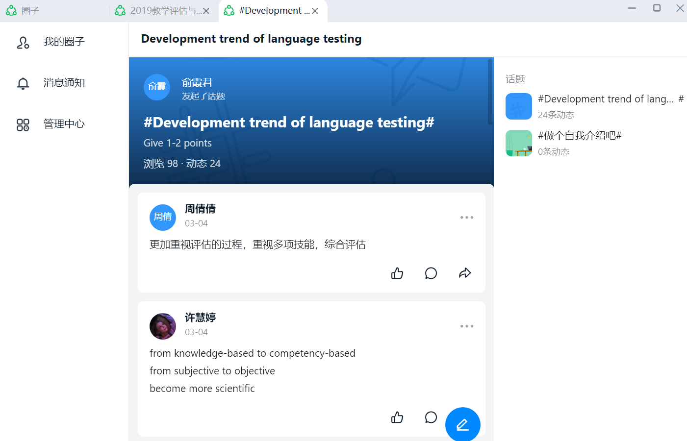 俞霞君老师课上的讨论圈子
