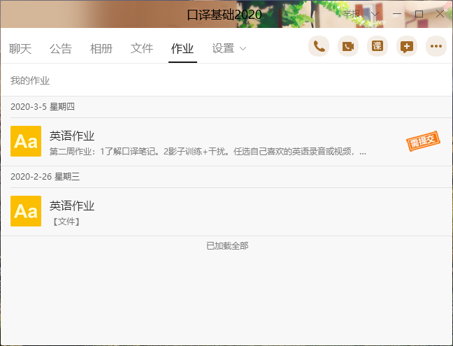 虽然我们在全国各地“云聚集”,但骆玉峰老师的基础口译仍然让我们感受到口译的魅力。大家在做练习时依旧感受到“压力”和“紧张”,口译课带来的享受,不会因为距离和“云”而改变。